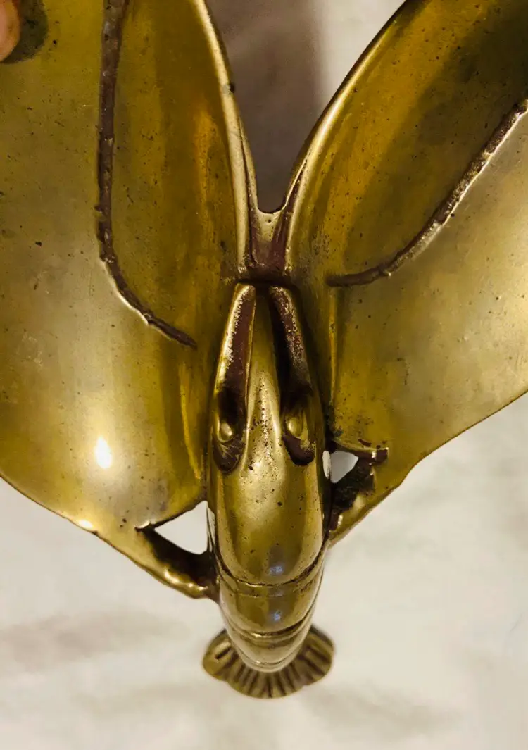 Add a touch of coastal charm and vintage sophistication to your home with this vintage brass Lobster Tray. Featuring a beautifully detailed lobster design, this tray is perfect for small trinkets, display, or as a standout decor accent on a coffee table, bar cart, or entryway. In good used condition.