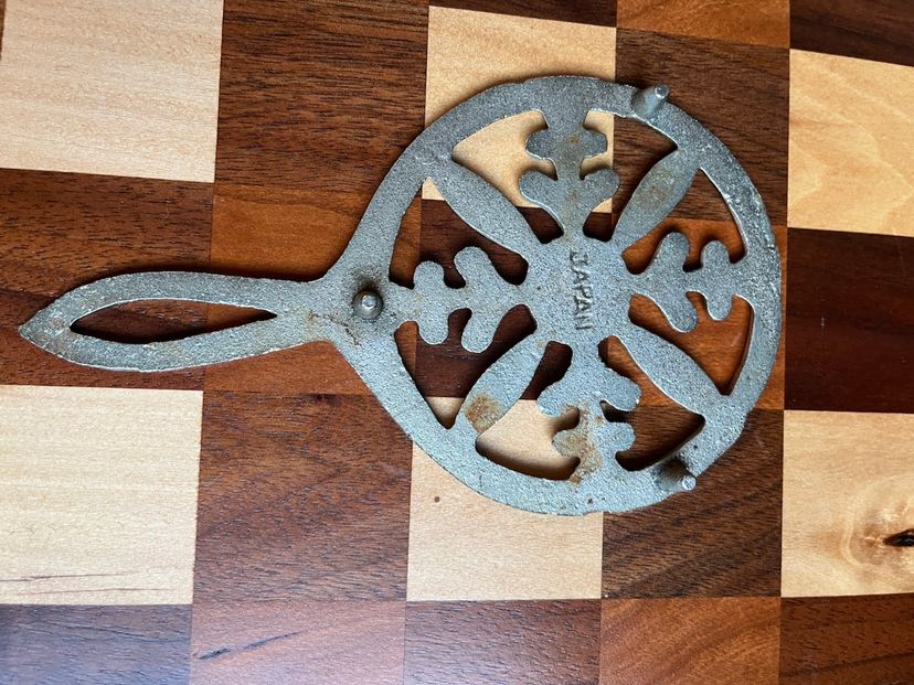 Vintage brass footed trivet snowflake/floral design 6.5 inches long