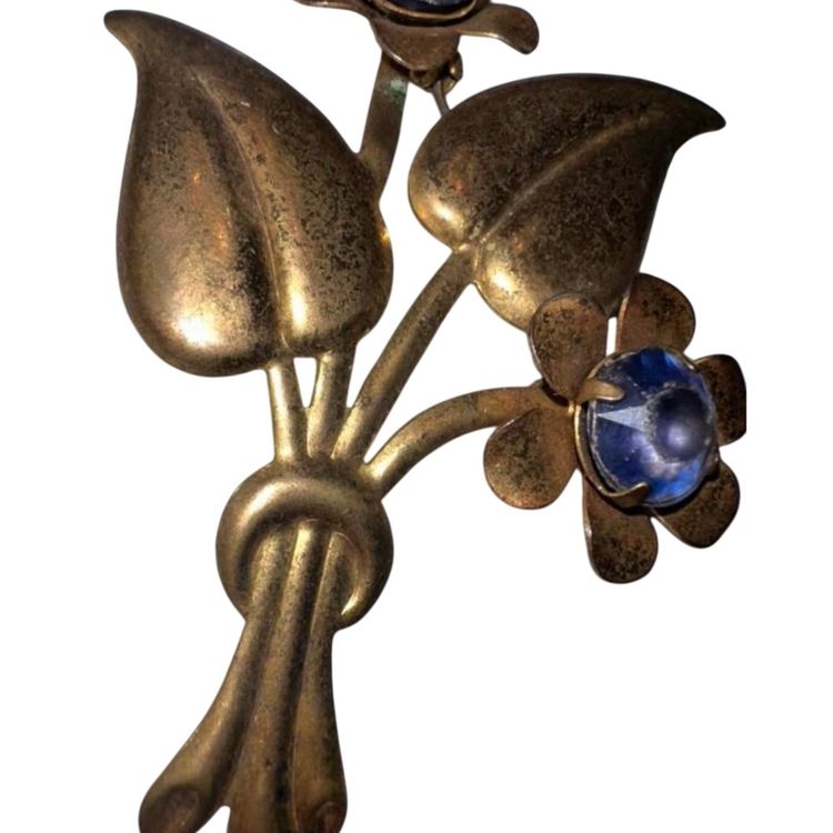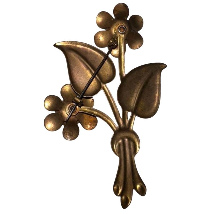 Vintage brass/copper tone double flower brooch Much wear Will leave cleaning up to potential buyer 4 plus shipping