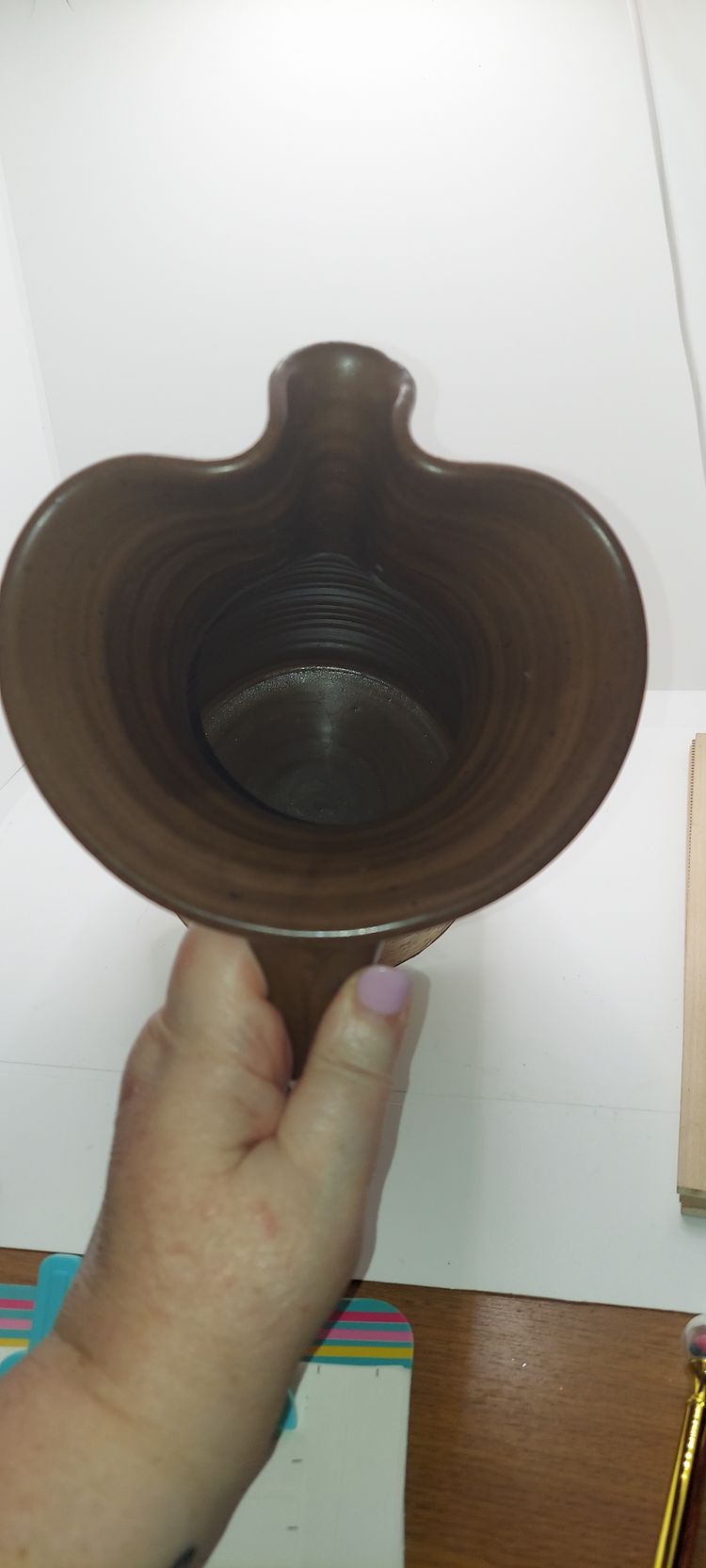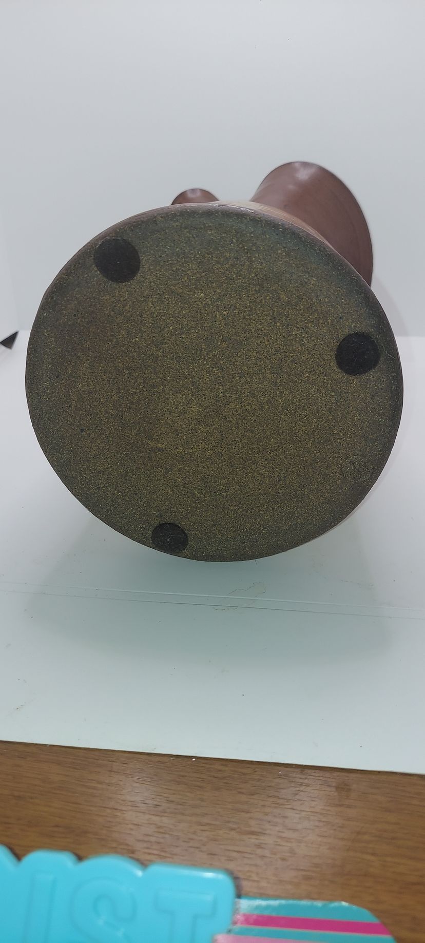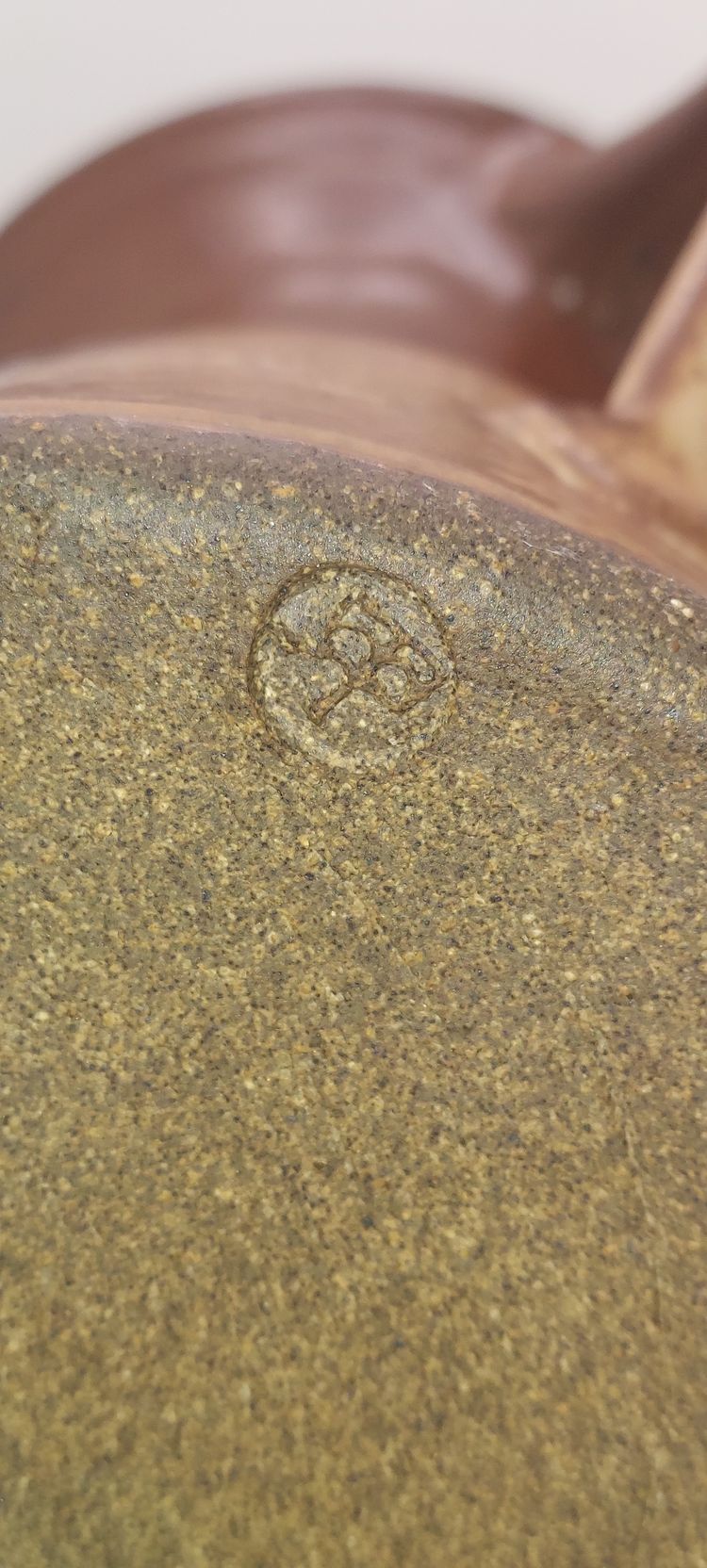 This is an ABSOLUTELY GORGEOUS Vintage studio pottery jug or pitcher. It is made of stoneware with a speckled, glazed finish. It features a brown, abstract floral leaf motif on a lighter, speckled background. Measurement is 10 inches tall and 6 inches wide at the bottom. This pitcher is well made and heavy. There is a maker's mark on the bottom that I'm not able to identify. It is a mystery BUT this is a VERY #RARE item!! This item is cross-posted on other apps so if you love it grab it now! Also please see our other items for sale as we love to bundle to save on shipping! All of our packages are packed with love and care so rest assured it will arrive safely. Please send serious offers as we usually accept ones that are lower than competitive priced!