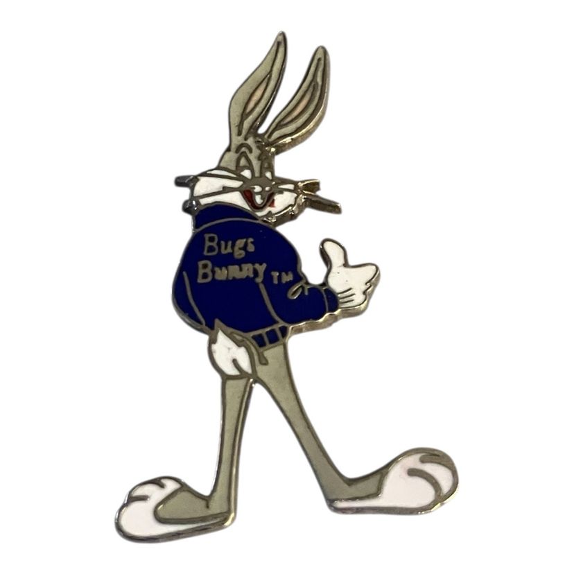 Vintage 1994 Bugs Bunny in Denim Jacket Enamel Tac Pin Retro. Collectible Item. Pre-owned in Excellent Condition. Measures 1-1/2" L X 1" W.