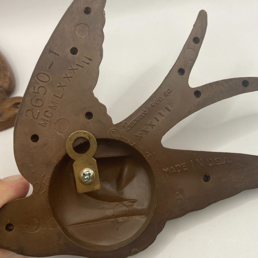 These little birds were produced in the 80’s, and come in three sizes ranging from 3 3/4” to 5 1/2”. They are made of plastic, are light weight, and can be arranged in various ways. They each have a hanger for easy installation, and are in great shape. No breaks or damage noted.