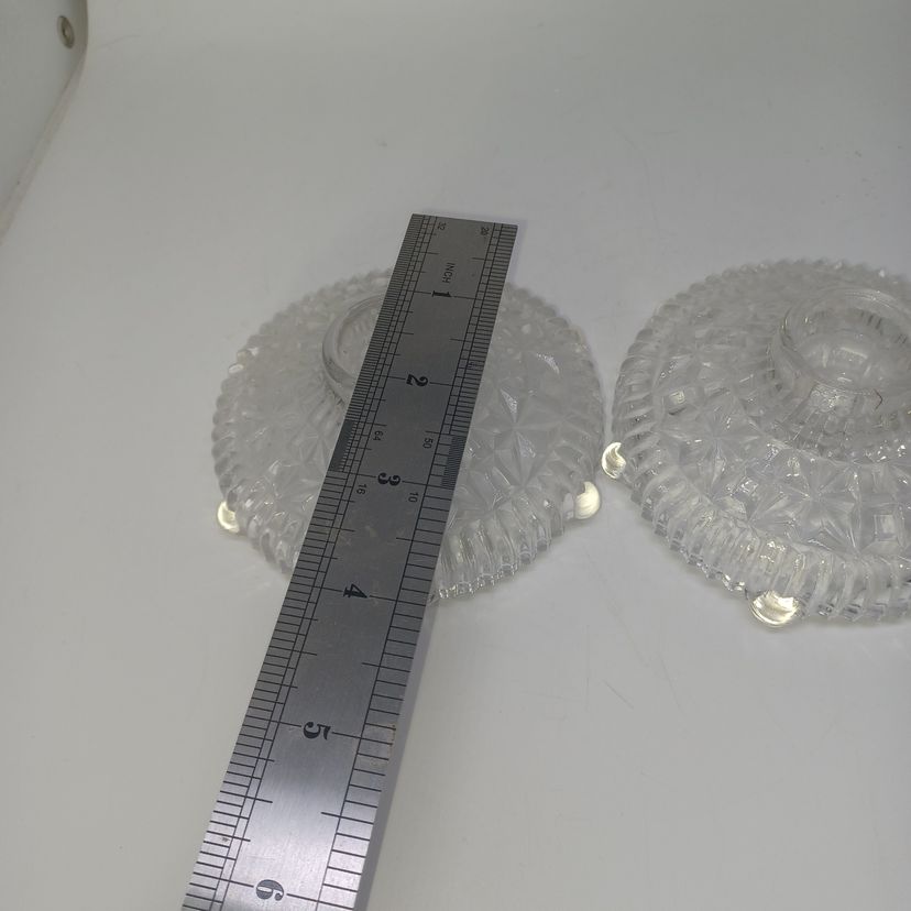 Each candle holder measures 2 inches high and 4 inches in diameter, each stands on 6 ball feet and will take a normal taper candle.