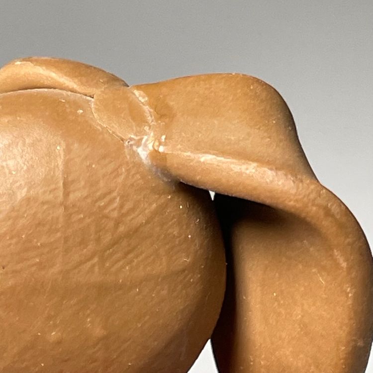 Good Preowned - visible wear and/or minor flaws present. Appears to be REPAIRED at both of the ears, I believe. Some traces of glue, one ear more noticeable than the other. See photos.
