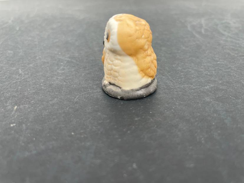 This adorable vintage ceramic thimble figurine is a must-have for any collector or seamstress. The hand-painted design features a charming owl with intricate details on porcelain. Made in Taiwan, this vintage original thimble is perfect for adding a touch of boho style to any sewing project or display. Its unique design is sure to catch the eye of anyone who sees it, making it a great addition to any collection.