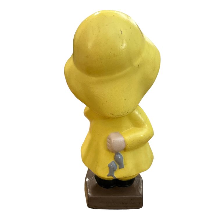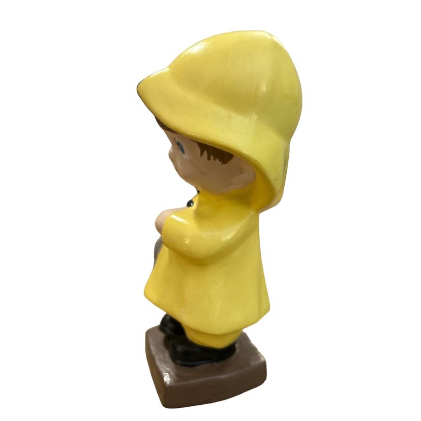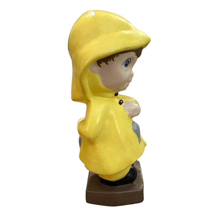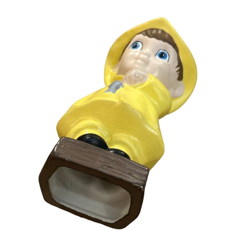 Vintage Ceramic Boy Wearing Yellow Raincoat Fishing