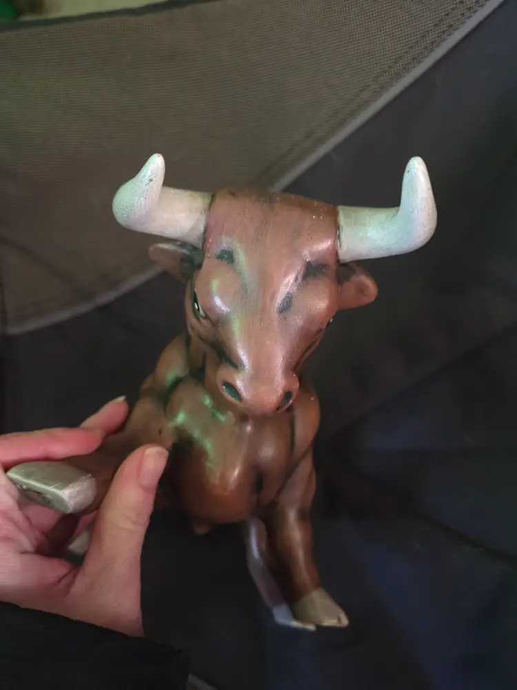 Vintage Ceramic Charging Bull Figurine