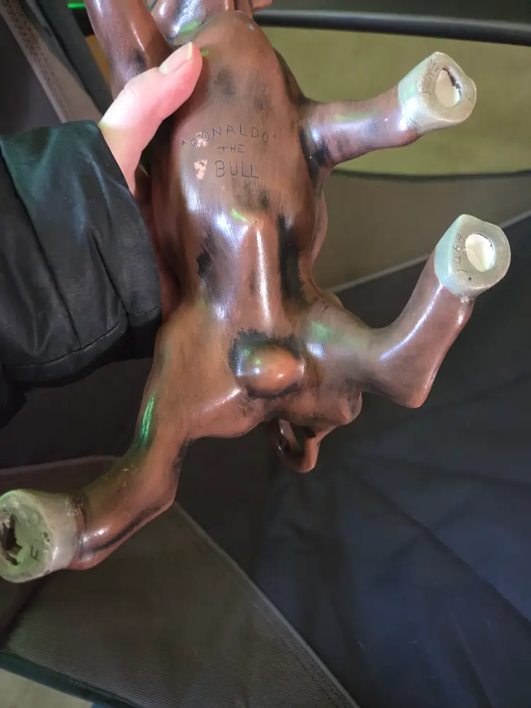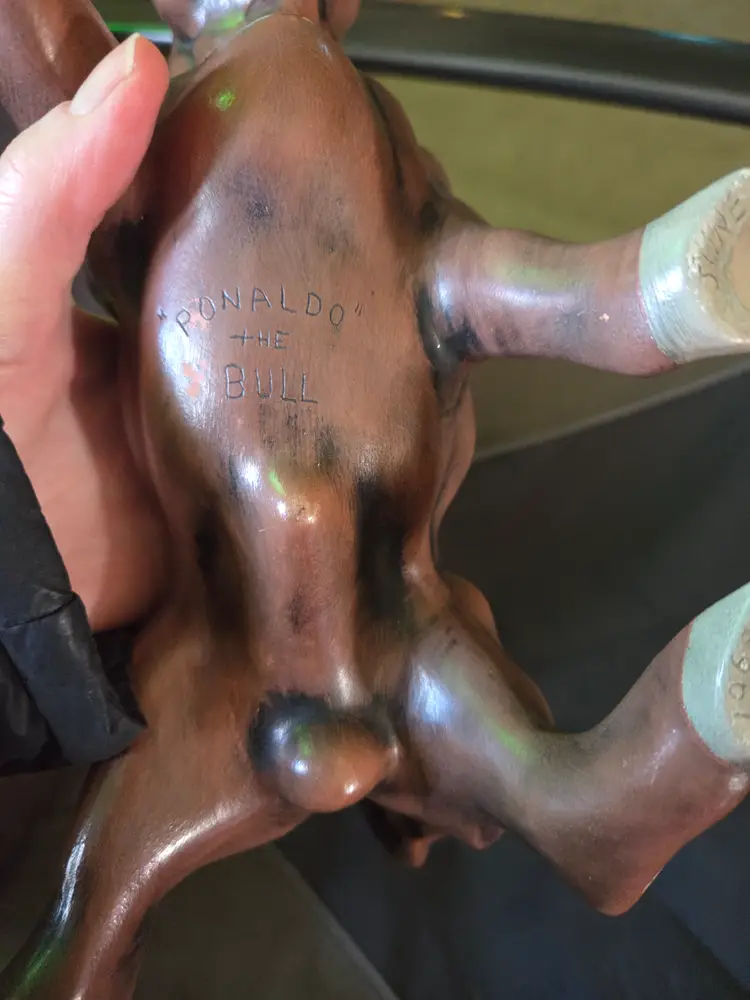 There are names and dates under the Bull and under its feet see photos