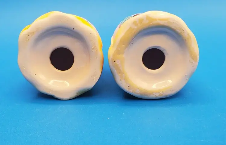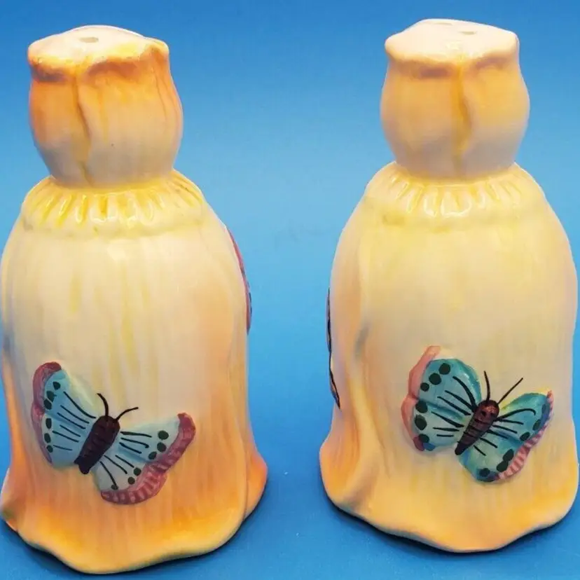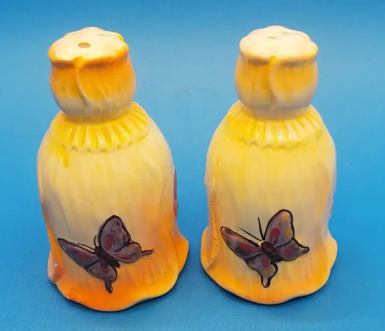 Nice bright yellow butterfly decorated shakers. Slight signs of normal wear and no stoppers