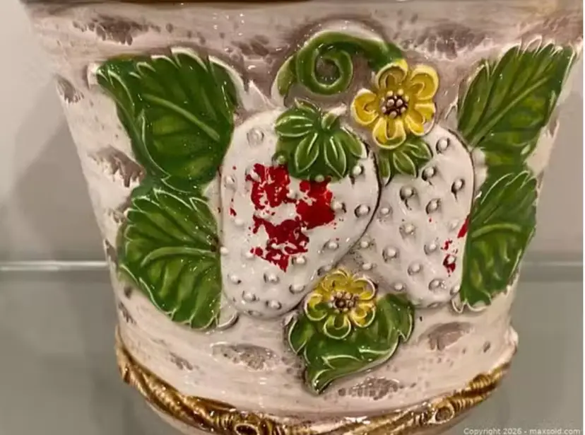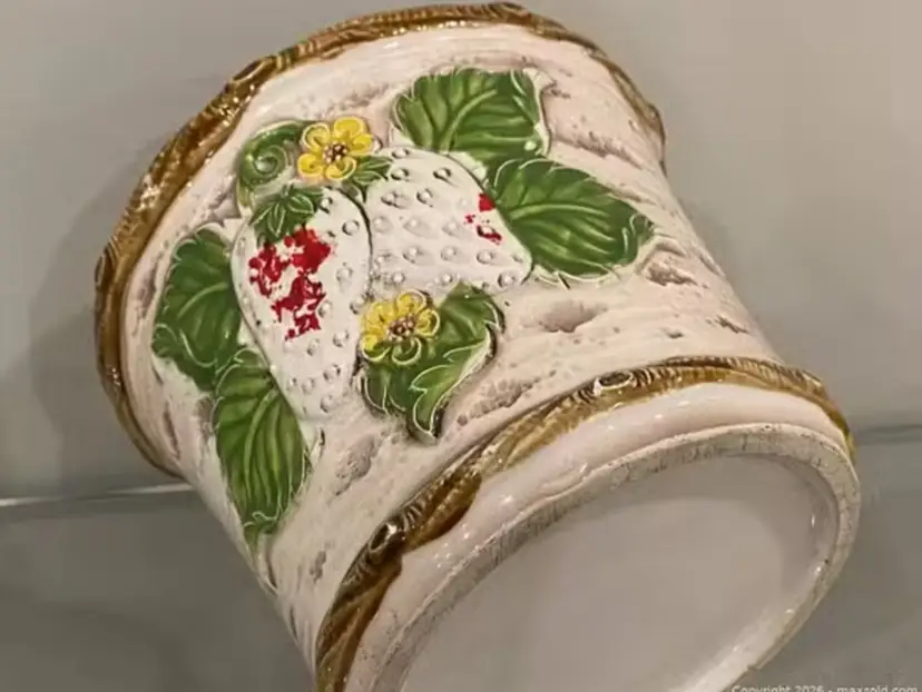 Vintage Ceramic Planter with Strawberries Made in Japan