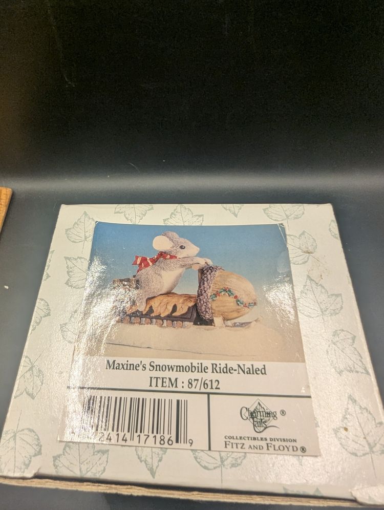 This is a fantastic Vintage Ftiz and Floyd Charming Tails Maxine's Snowmobile Ride-Naled 87/612. No chips or cracks. Please see all pictures for condition and measurements.