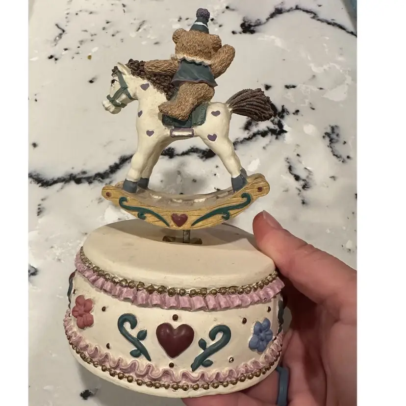 Plays “It’s a small world”, from the cherished teddies line. In great condition, minor scuffing at the bottom. It’s also possible the bottom was glued back in, but I can’t tell for sure.