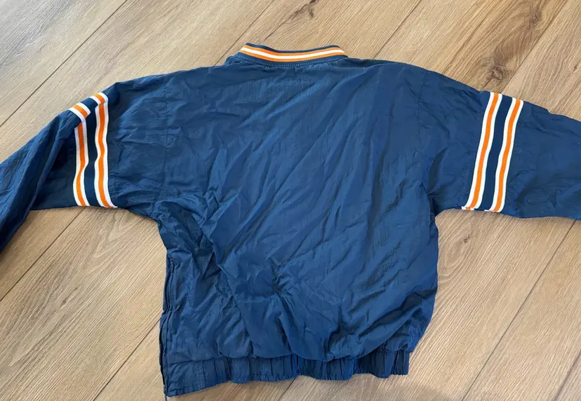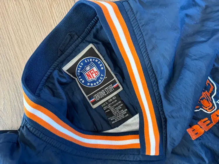 VINTAGE CHICAGO BEARS NFL PULLOVER JACKET BY NFL YOUTH LARGE 14/16. Good condition. Wrinkles. Genuine NFL merchandise. Nice windbreaker. Comes as seen in pictures.