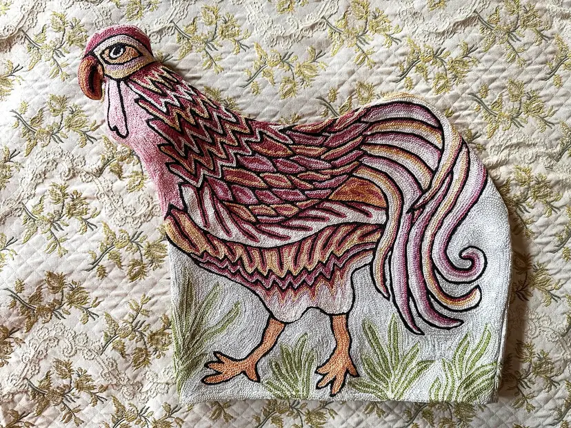 Vintage embroidered chicken toaster cover both sides embroidered h 13” x 12