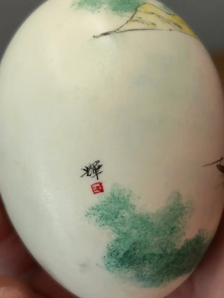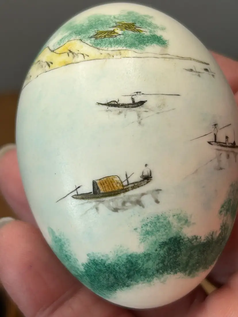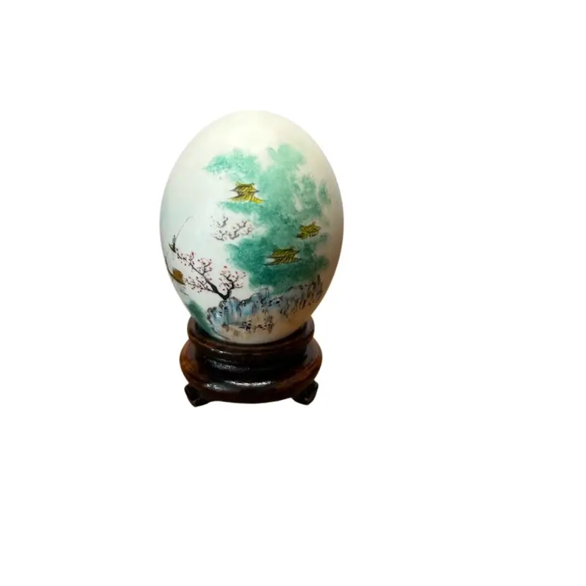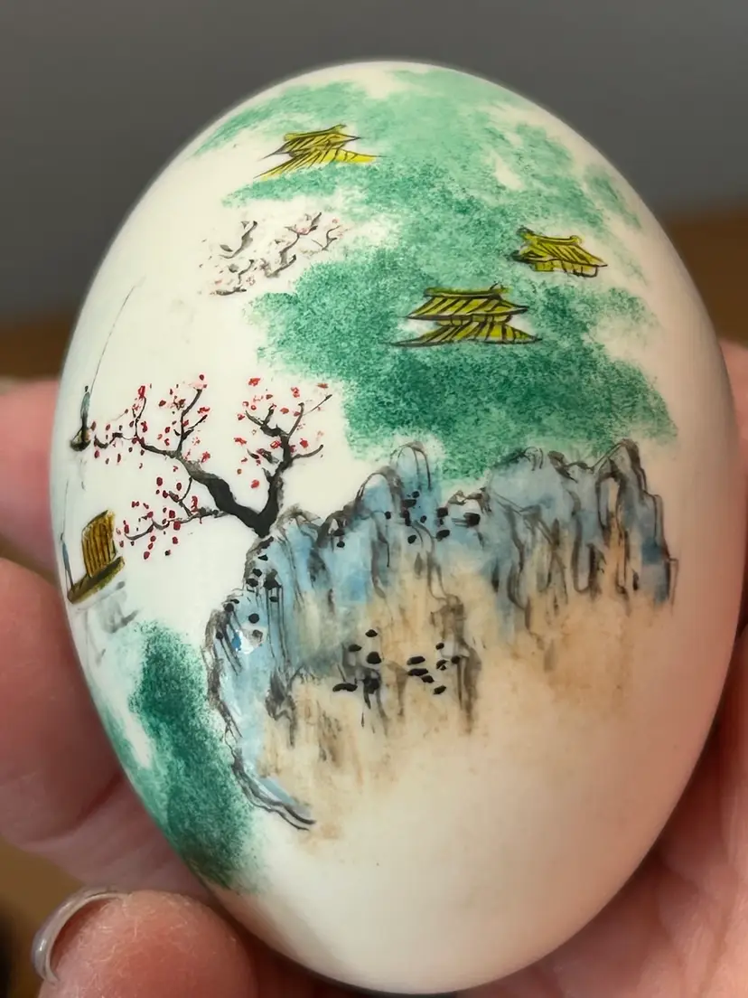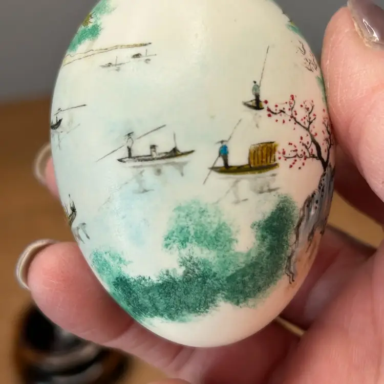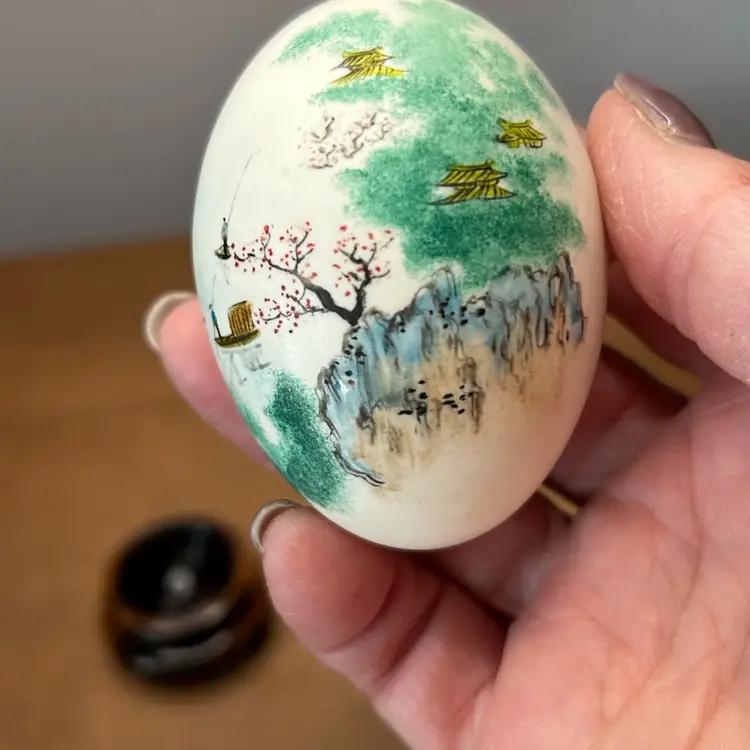 Vintage Chinese Hand Painted Egg With Stand Landscape Scene @ 3โ€ Tall