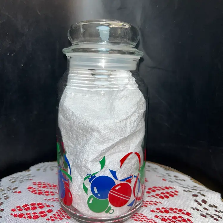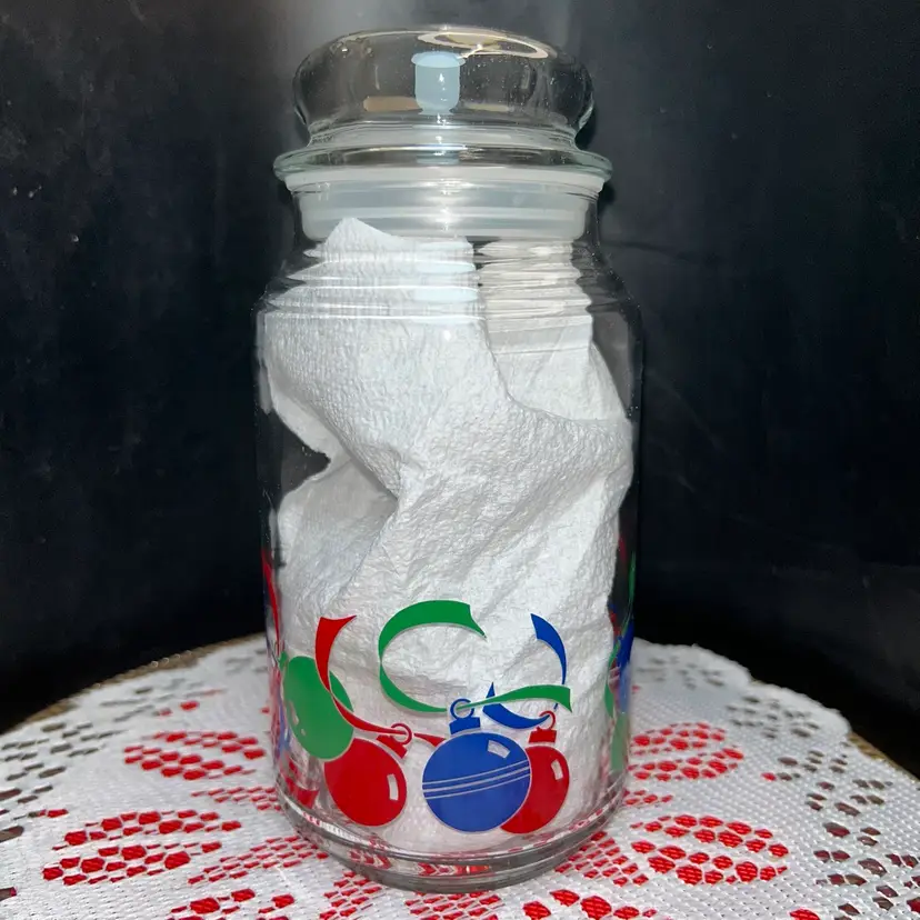 Vintage Christmas Glass Canister W/Lid That Seals