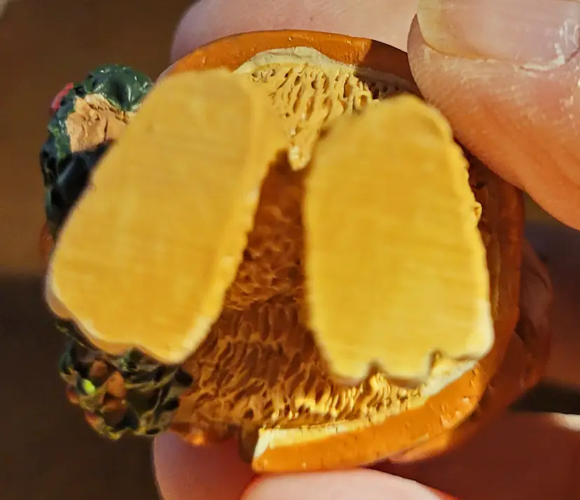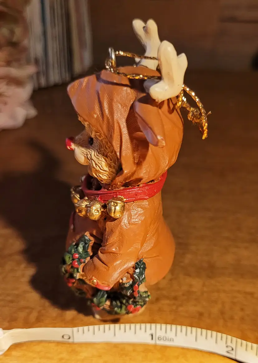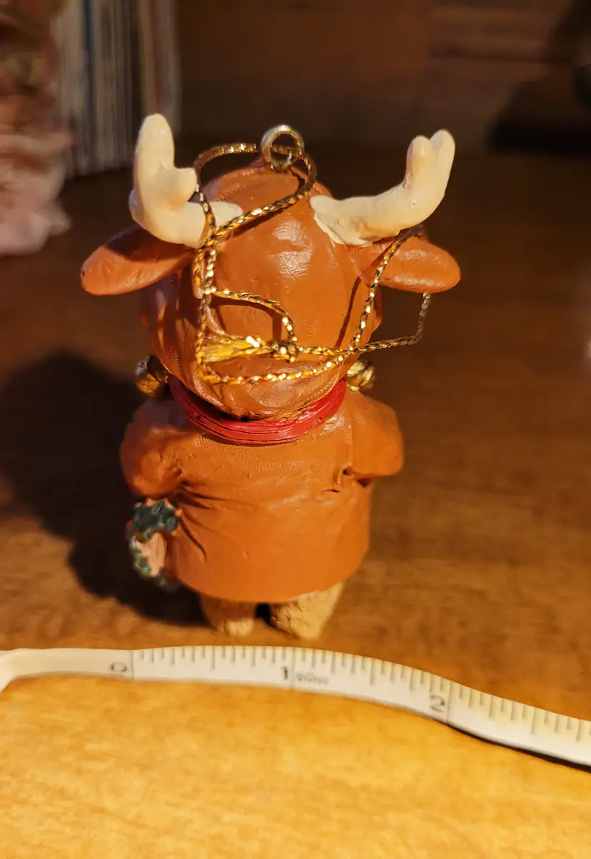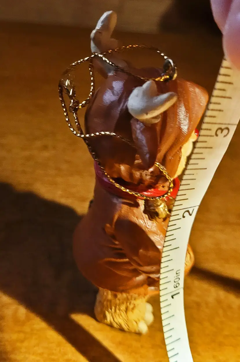 This little guy is made of resin, and approx. 1.75x3.5x1.5. No chips or cracks, and from a smoke free home, please refer to the pictures for its condition and size.