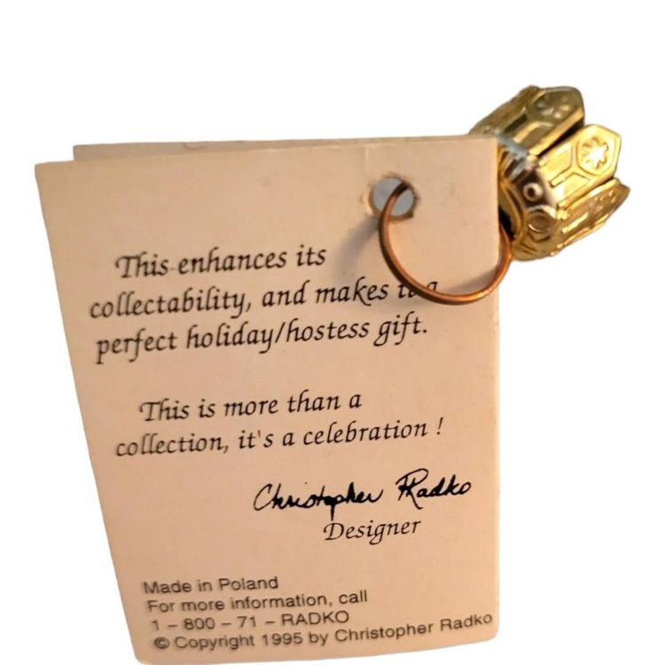 Vintage Radko hand blown Toy Soldier ornament with original tags attached.