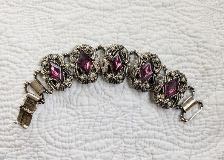I developed a love of small, intricate objects when I was a girl; a passion that became a vintage jewelry obsession as an adult. Eventually, I curated such a robust collection that I opened a brick and mortar store in the historic town of Ellicott City, MD. In 2016, a monstrous storm devastated the town and we lost everything except the small number of pieces of jewelry we were able to rescue from the wreckage. Despite this horrific experience, my love of vintage jewelry continues, a passion that I now pass on to my twin granddaughters when we play jewelry store. Peek inside my VJA store with hundreds of individually curated items. You may be delighted at seeing a piece from the past smiling back at you.