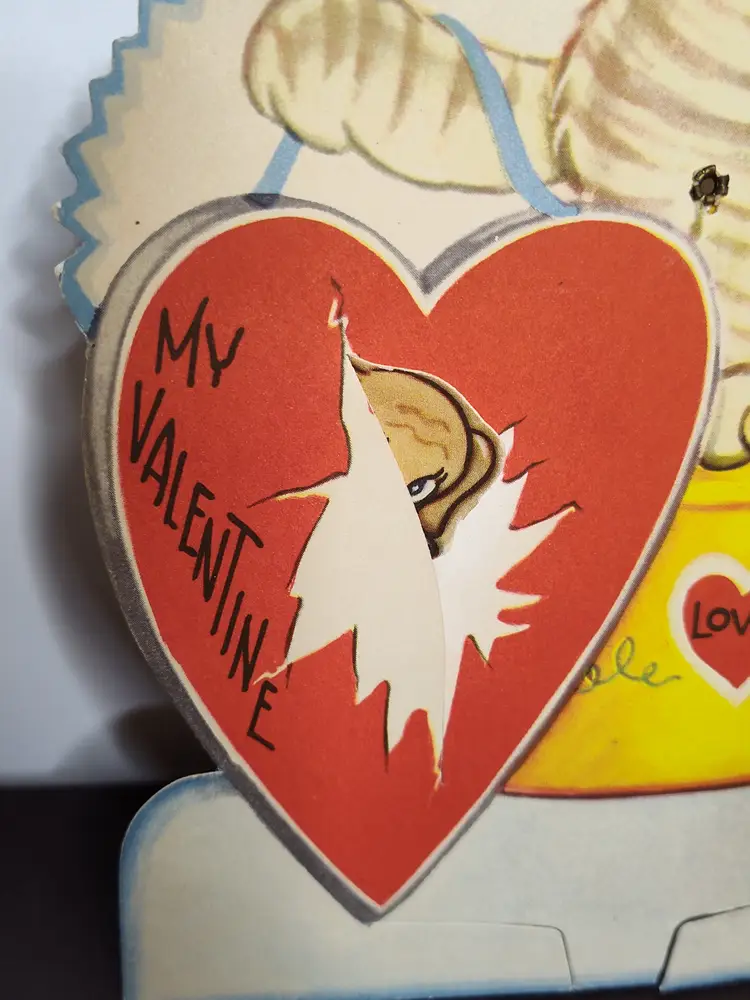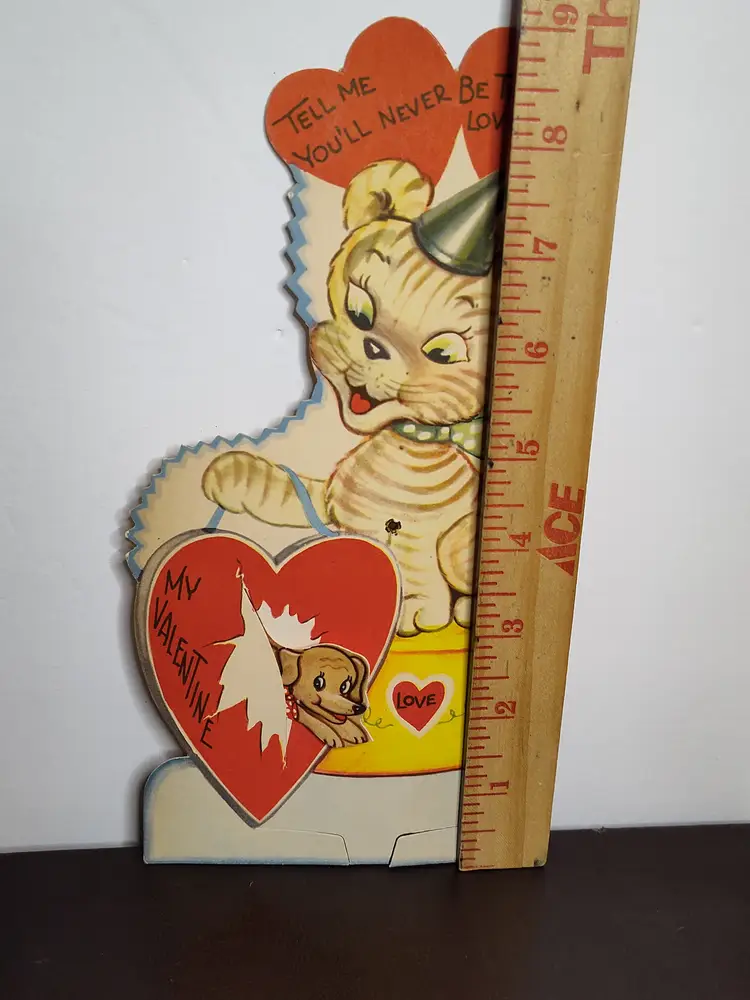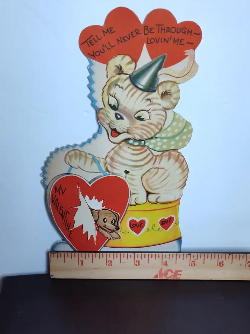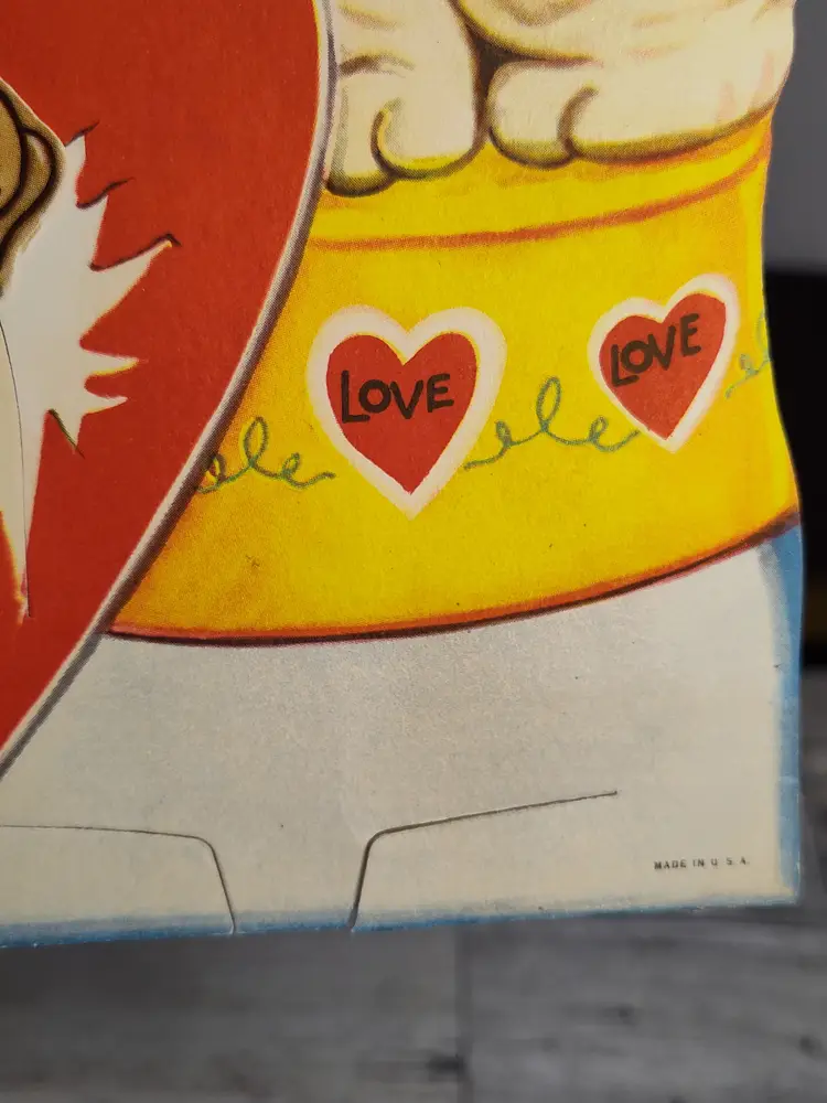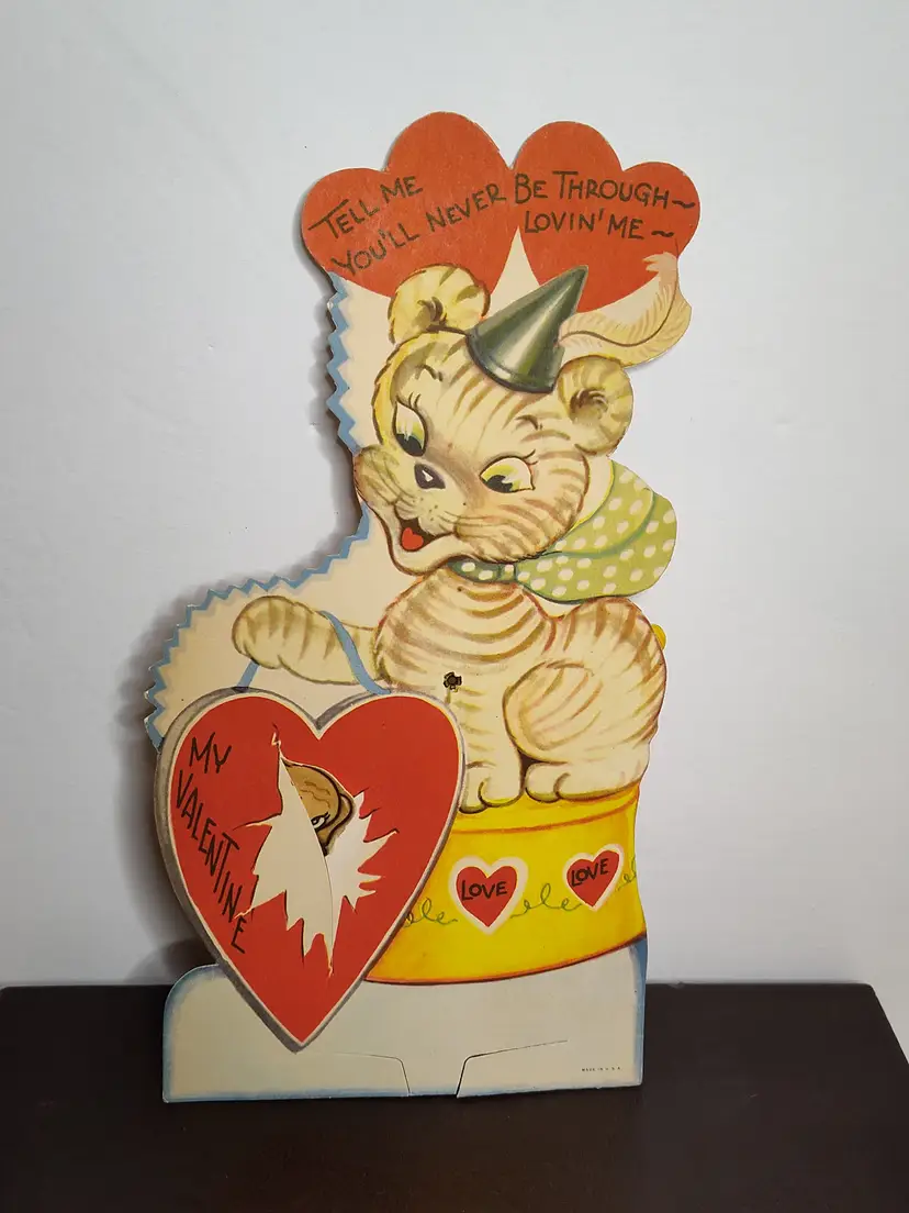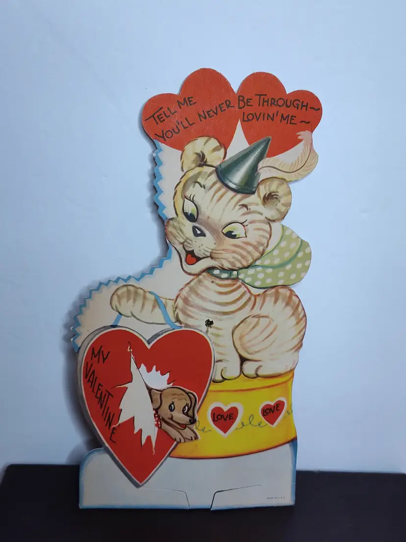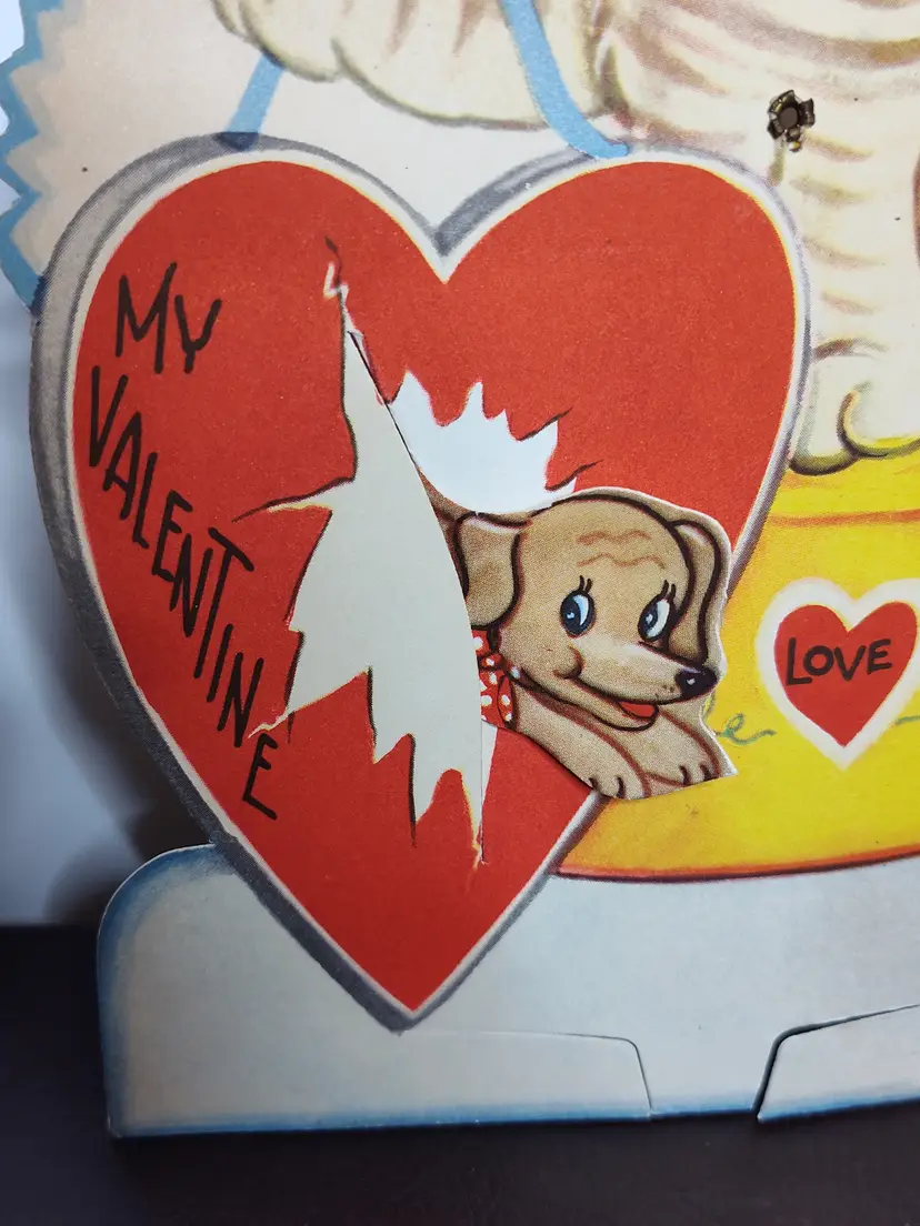 Large vintage Valentine with movement - tiger & dog Thicker cardstock