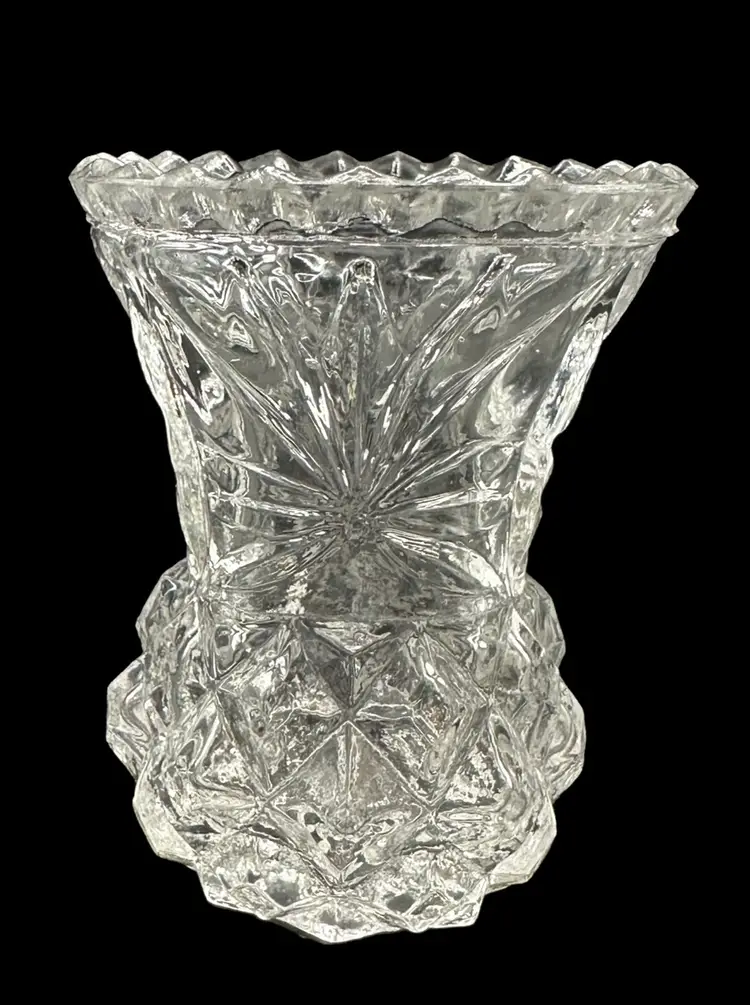 Really sparkly with all of the facets - sawtooth edge. Measures 2.5” tall.