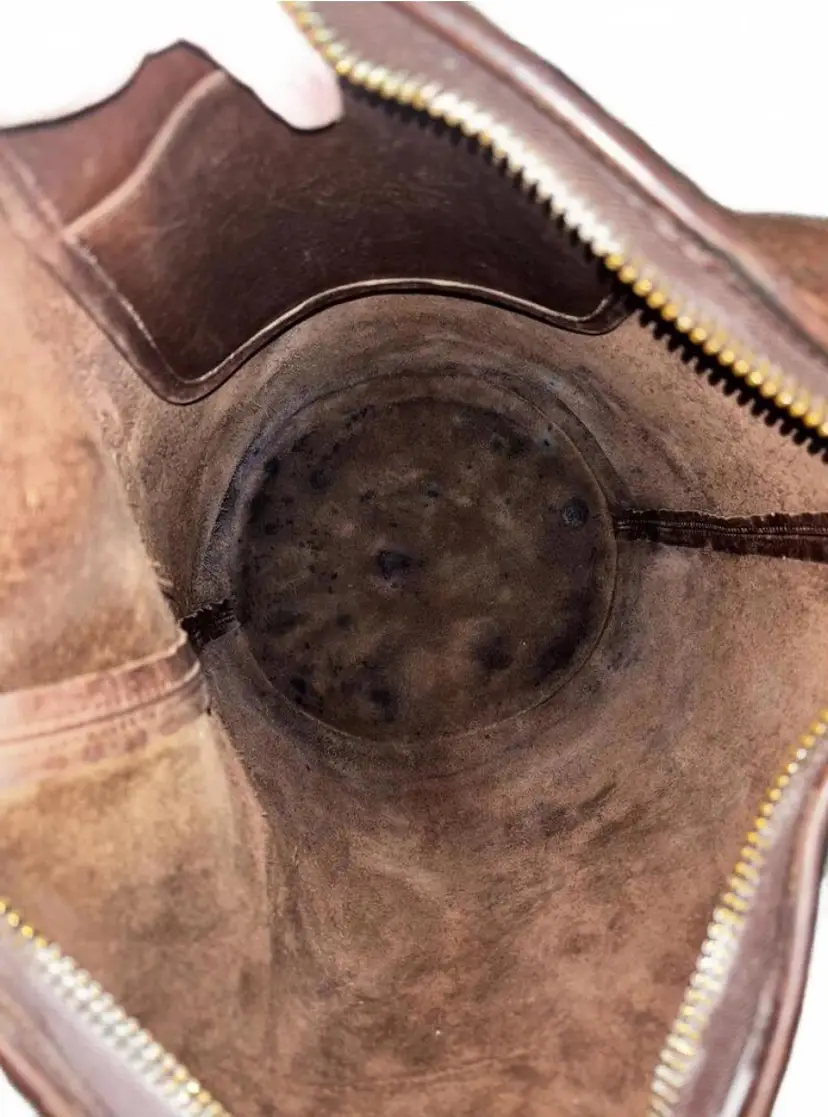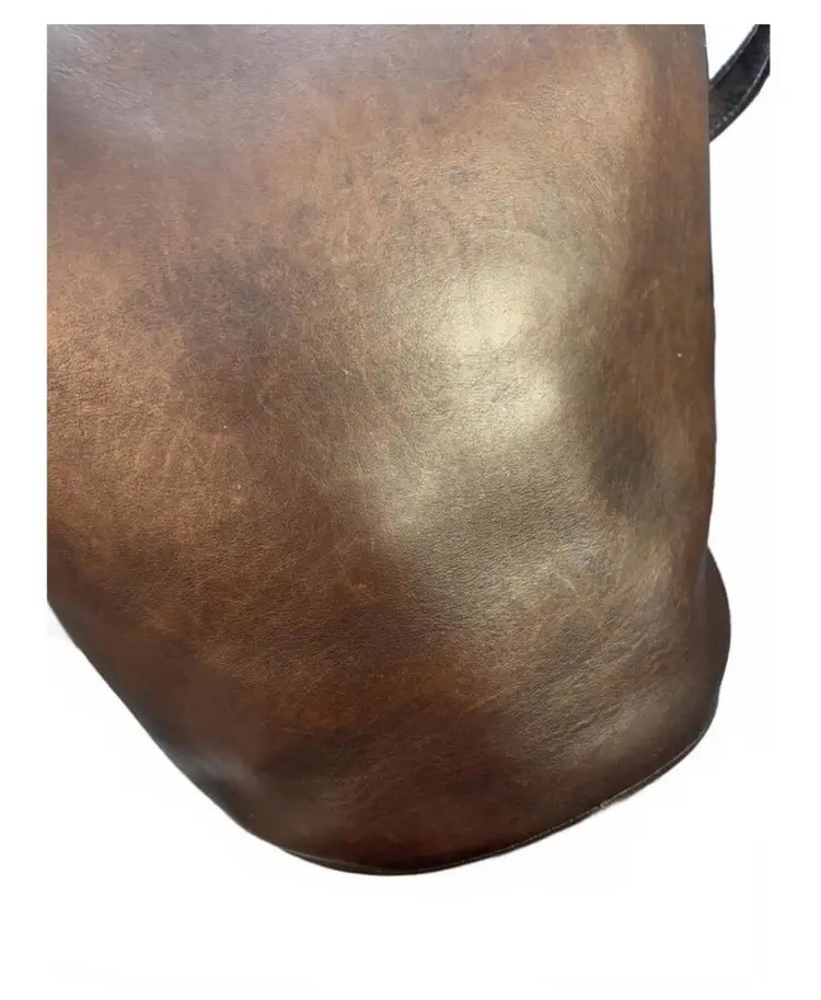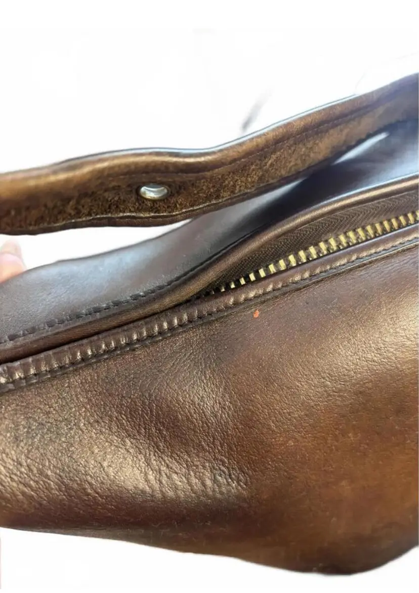 Condition: Pre-owned vintage. Ink stains visible on the bottom interior (see photos). Some have faintly bled through the base but not obvious unless closely inspected. No hangtag. Leather exterior shows natural wear consistent with age.