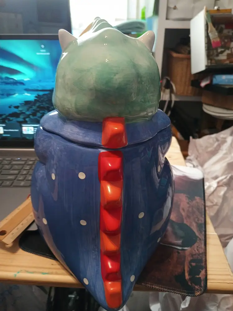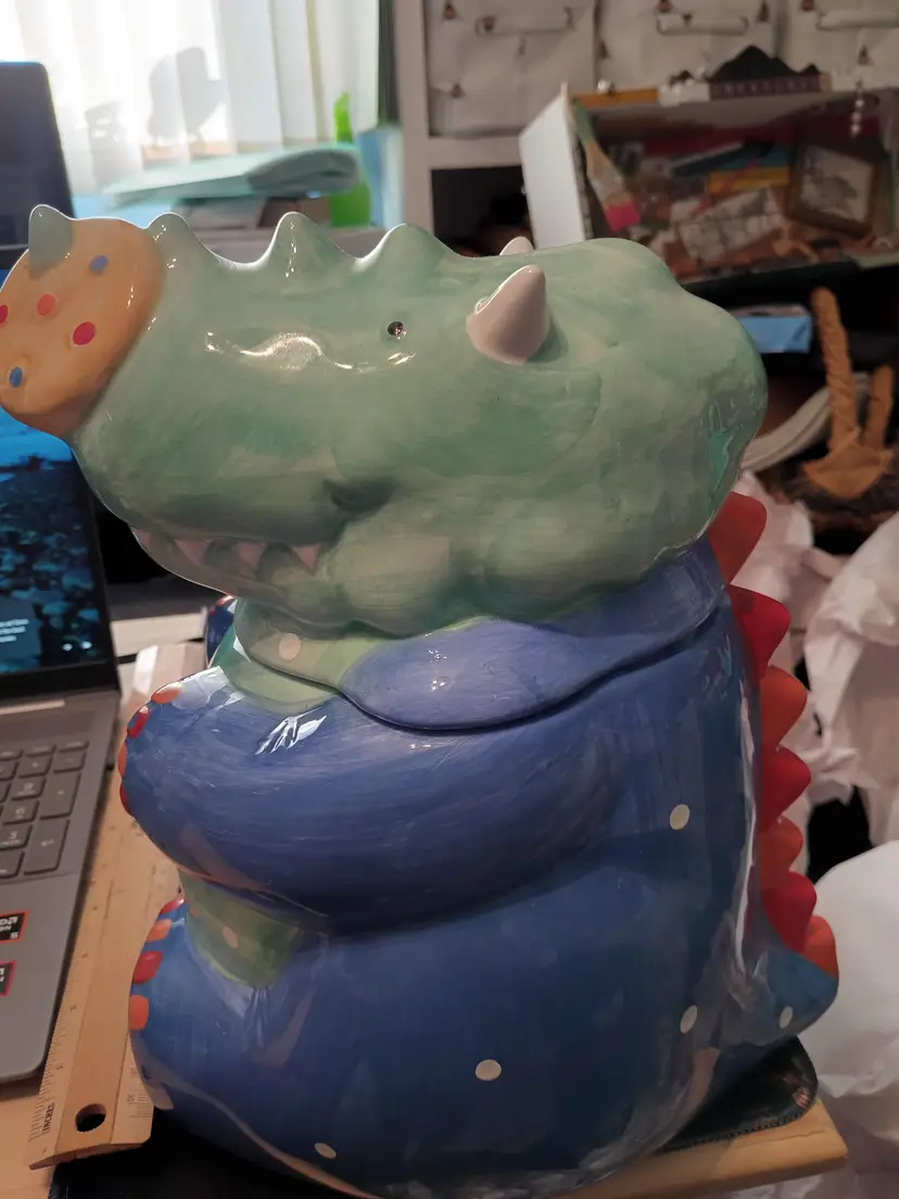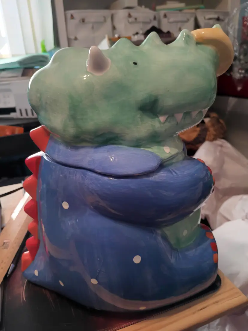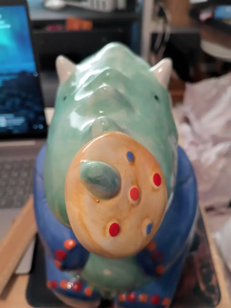 Ceramic he is about 10 inches high eight and a half inches deep and about 7 in wide