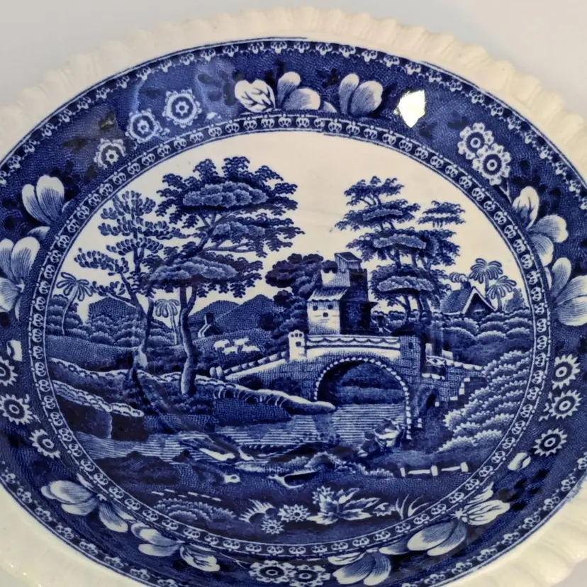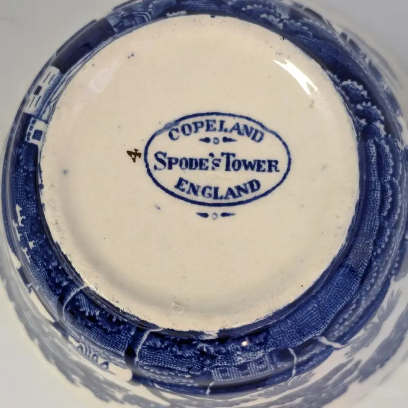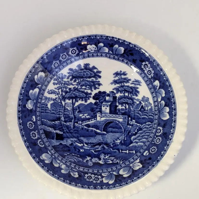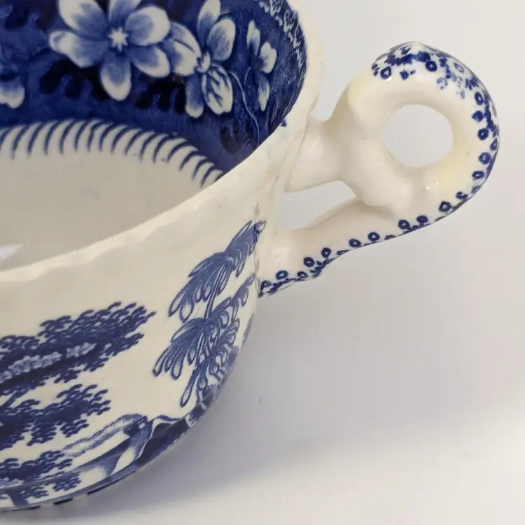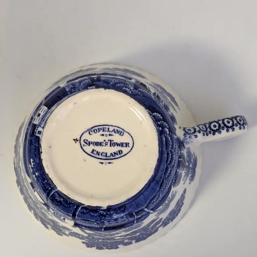 Lovely blue and white English teacup is in good condition with no chips or cracks. Saucer is 6"wide and cup is 2 1/4" in height and 3 3/4" wide. Made in England.