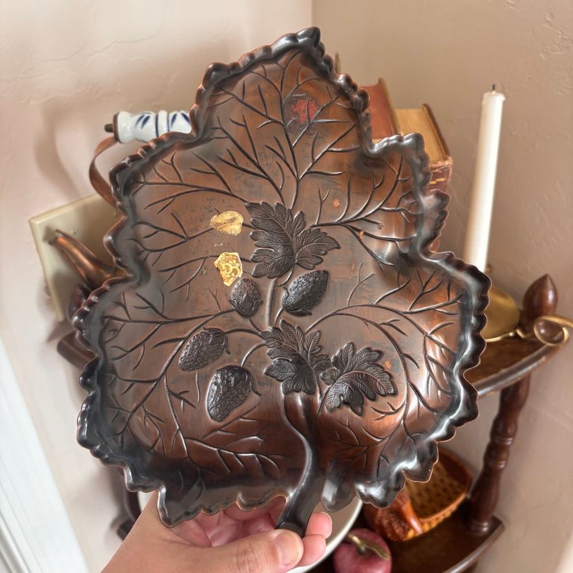 Lovely leaf tray 10”tall x 8”wide Vintage wear & patina as shown