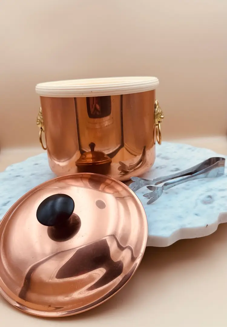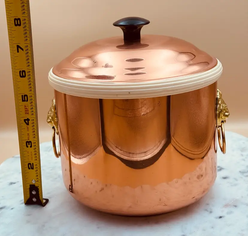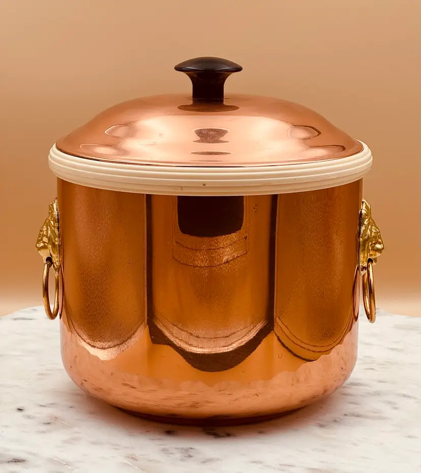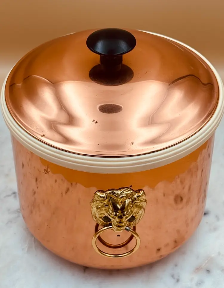 Vintage Coppercraft Guild Ice Bucket With Brass Lion Head Handles