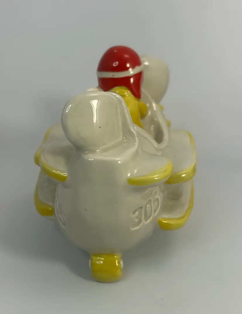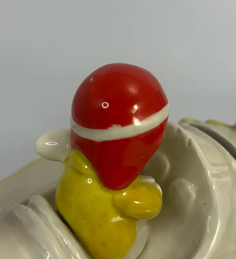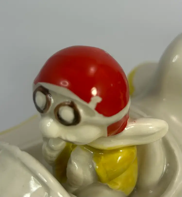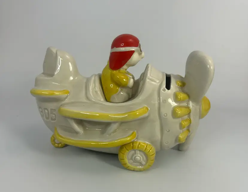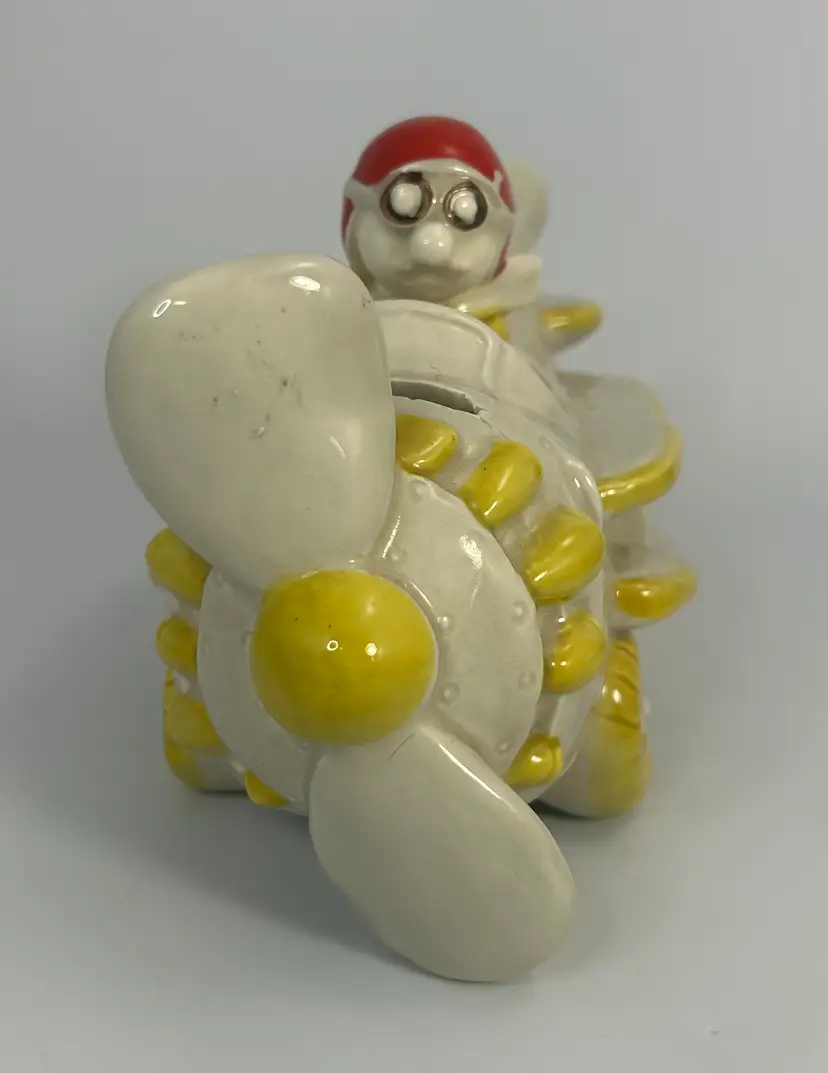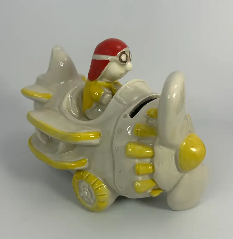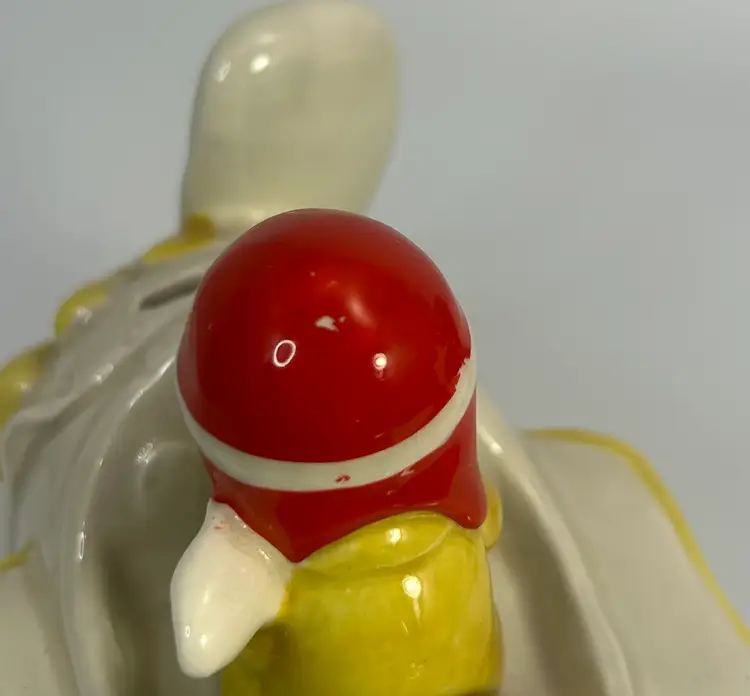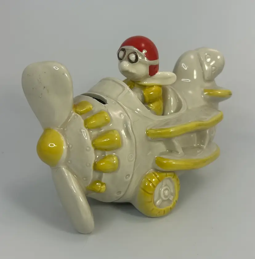 No chips or cracks. Has paint and glaze wear in places mostly on the pilot hat. Please look over all photos and enlarge to see all areas of wear.