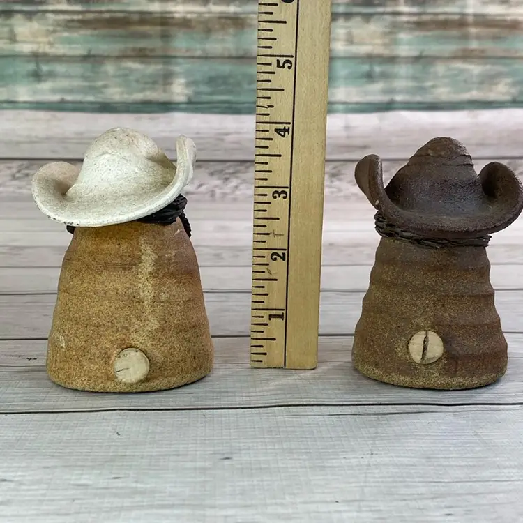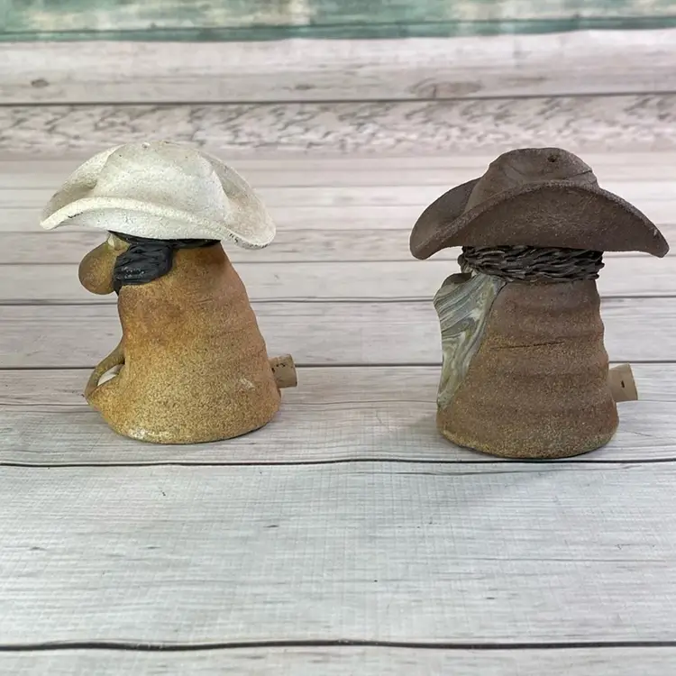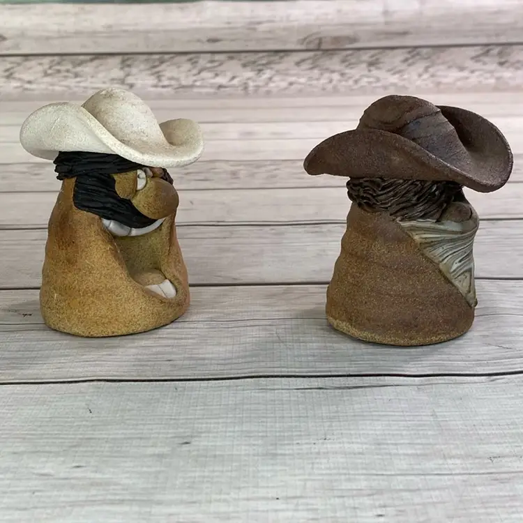 Great western cowboy folk art salt & Pepper Shakers KGC. Cork plugs. Please see photographs for exact item condition.