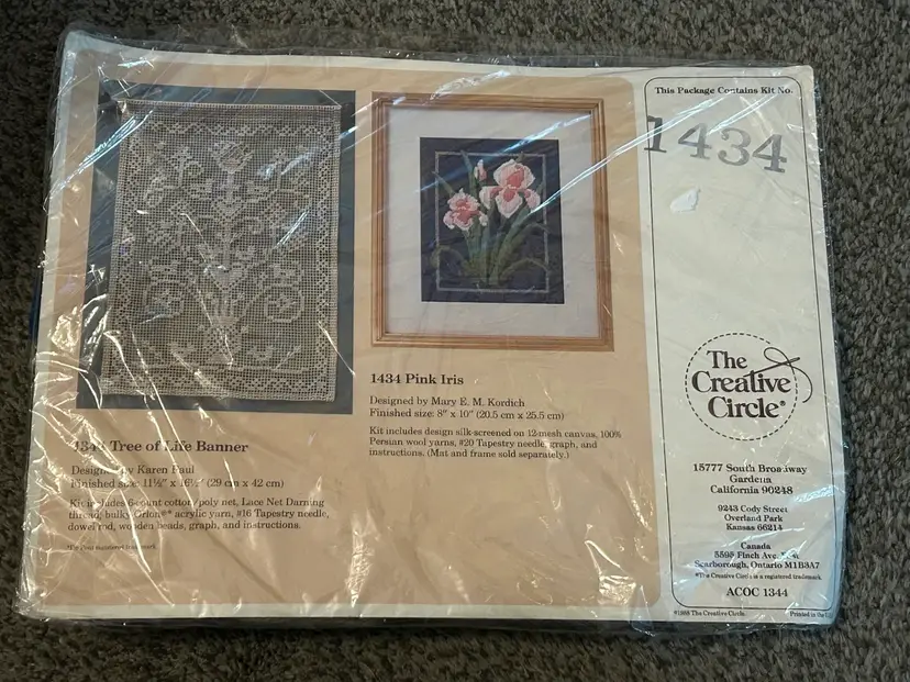 New old stock - creative circle always maximized packaging by putting two kits on one cover. You will only receive materials for one kit 1434 Pink Iris.
