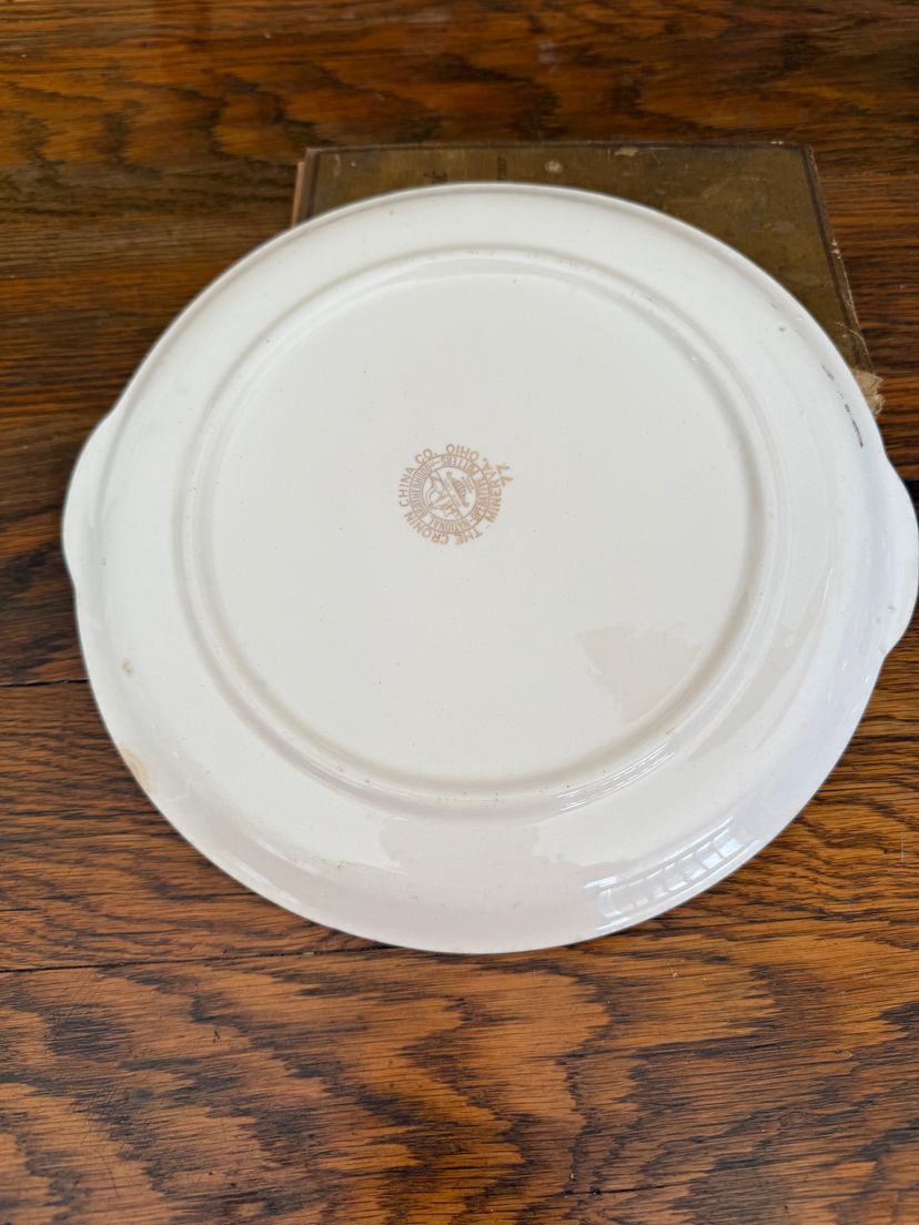 Made in Minerva, Ohio and stamped with the National Brotherhood of Operative Potters Union label, this plate is a lovely example of American Depression-Era pottery.