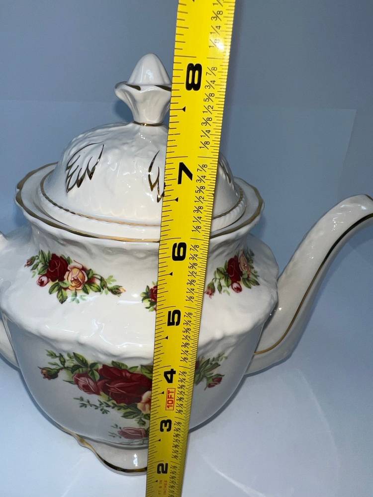 Measuring 10 inches in length and 8 inches in height, it is the perfect size for serving tea to family and friends. The backstamp is printed and the pattern is Old Country Roses. This teapot is a true vintage piece and should be hand washed only. It is a must-have for any tea enthusiast and would make a great addition to any collection.