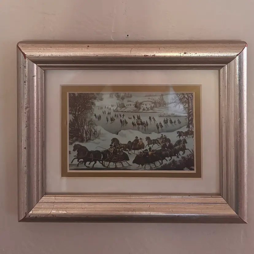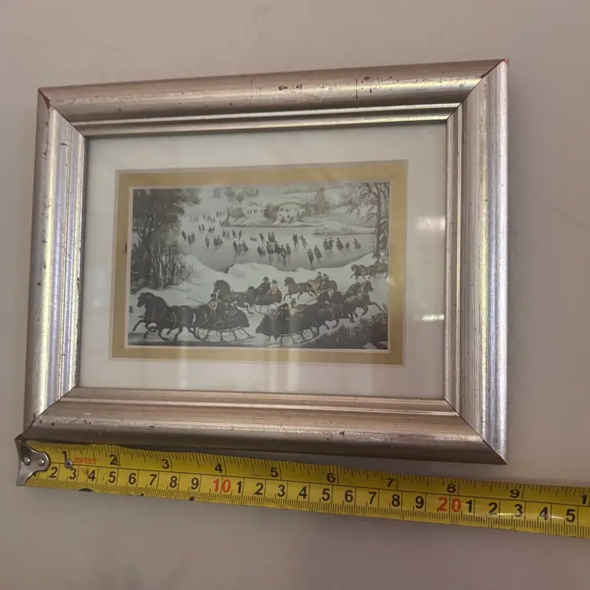 Precious silver framed print 6 1/2”tall x 8 1/2”long Vintage wear as shown- silver frame has some pant loss