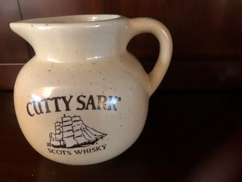 This circa 1990 stoneware pub jug stands about 4.5 inches tall and holds 16 ounces of liquid and was created to promote Cutty Sark Scotch Whisky.This collectible pitcher is a great addition to any collection, man cave, or home bar. The Cutty Sark brand is well-known in the whisky industry and this jug is a great way to showcase that.