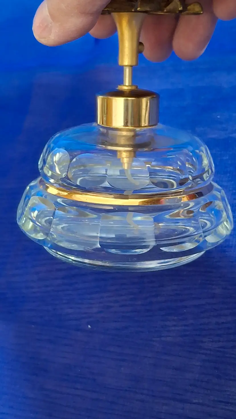 Vintage Czech Crystal Perfume Atomizer w/ Ornate Crown Top – 1950s