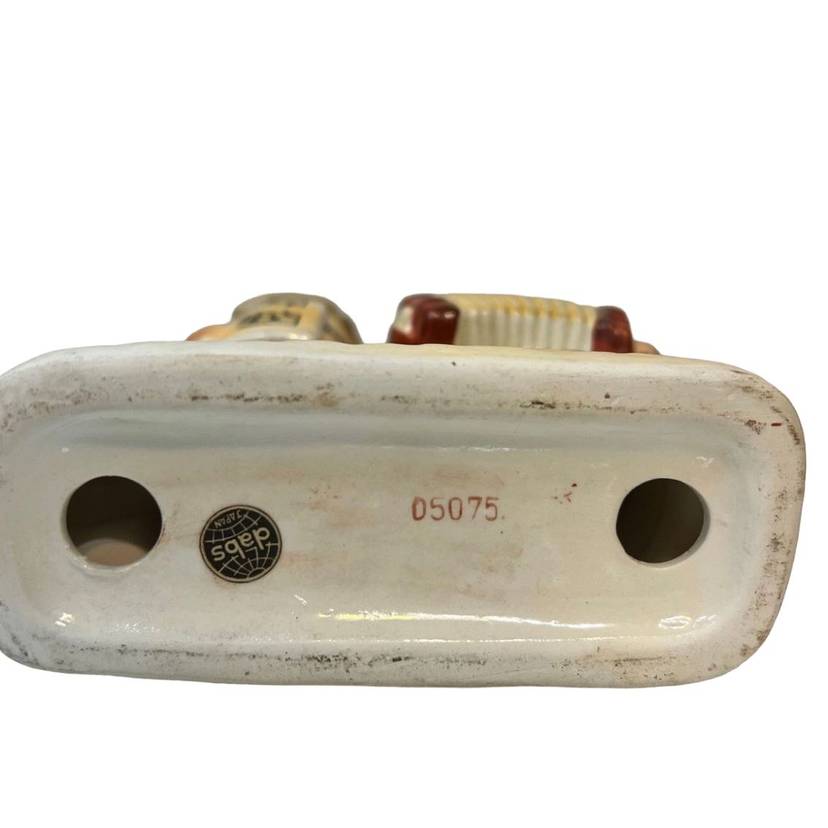 This is such a sweet figurine to add to your Christmas displays, and is a harder one to find! The little singing cat (or dog?) is ridiculously cute! There are no chips or cracks. Crazing present. Measures approximately 5”x 6.5”.
