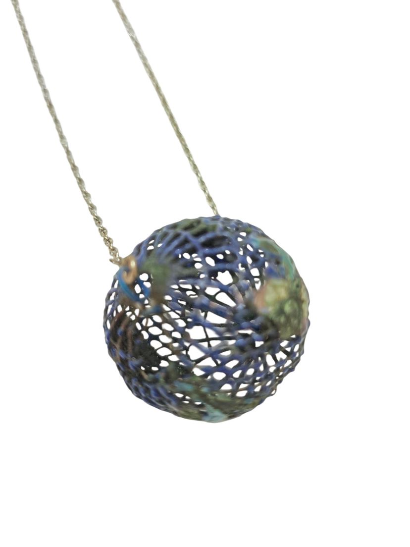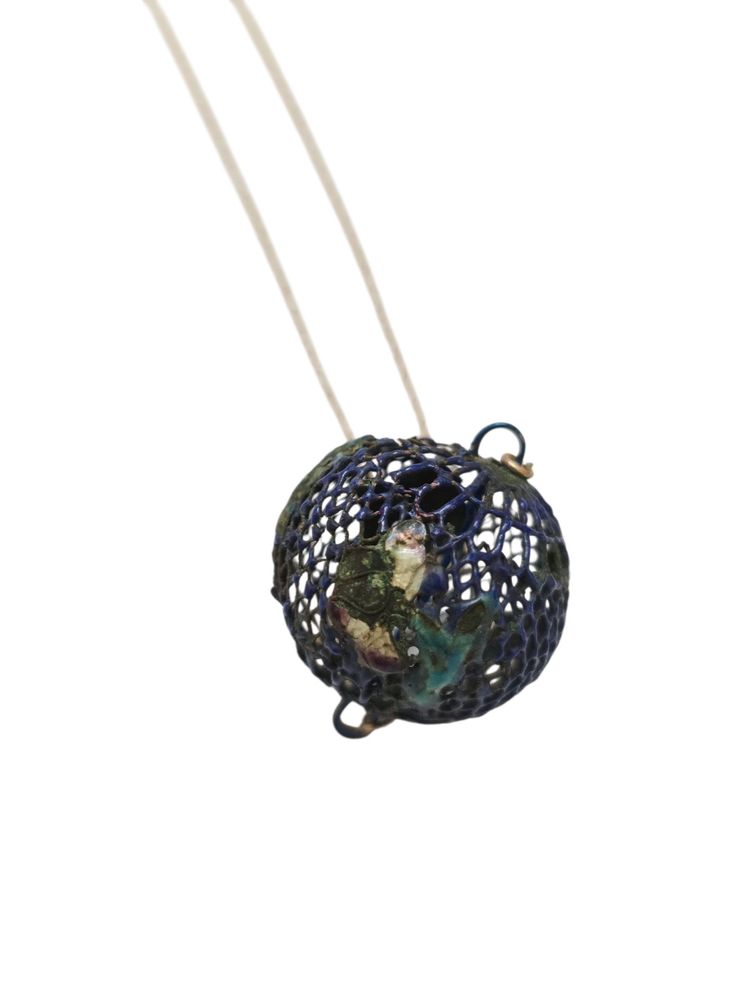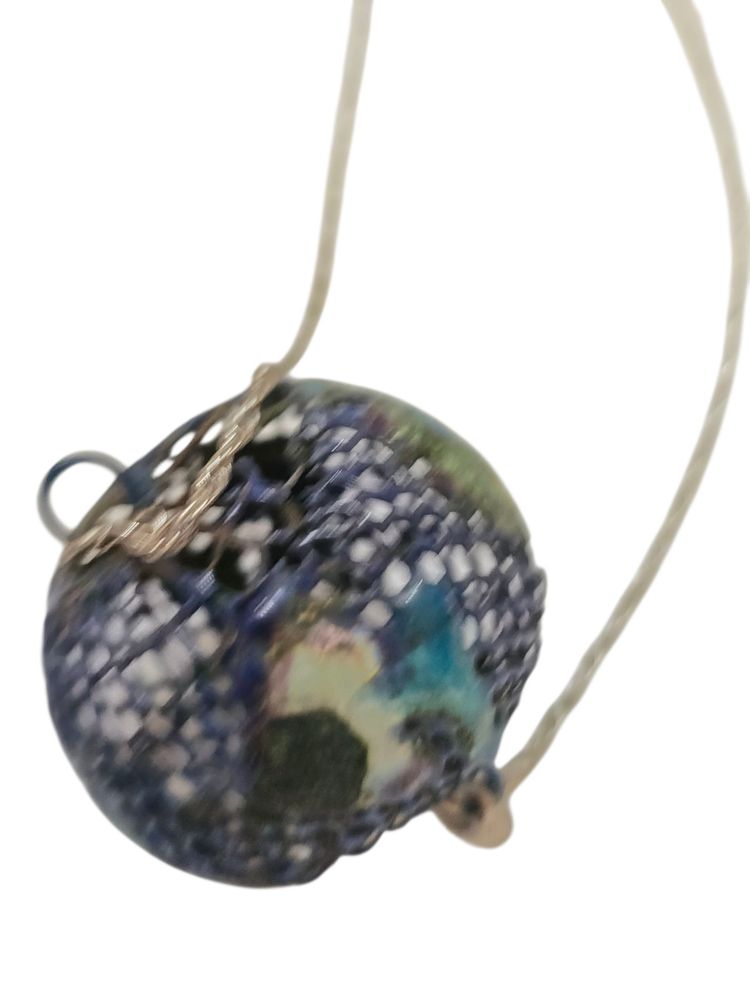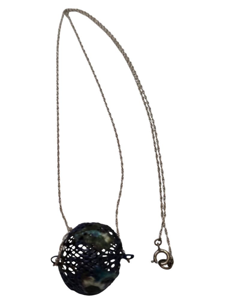 Vintage Dainty Silvertone Mesh Ball Necklace with Enamel Sections (A9055)