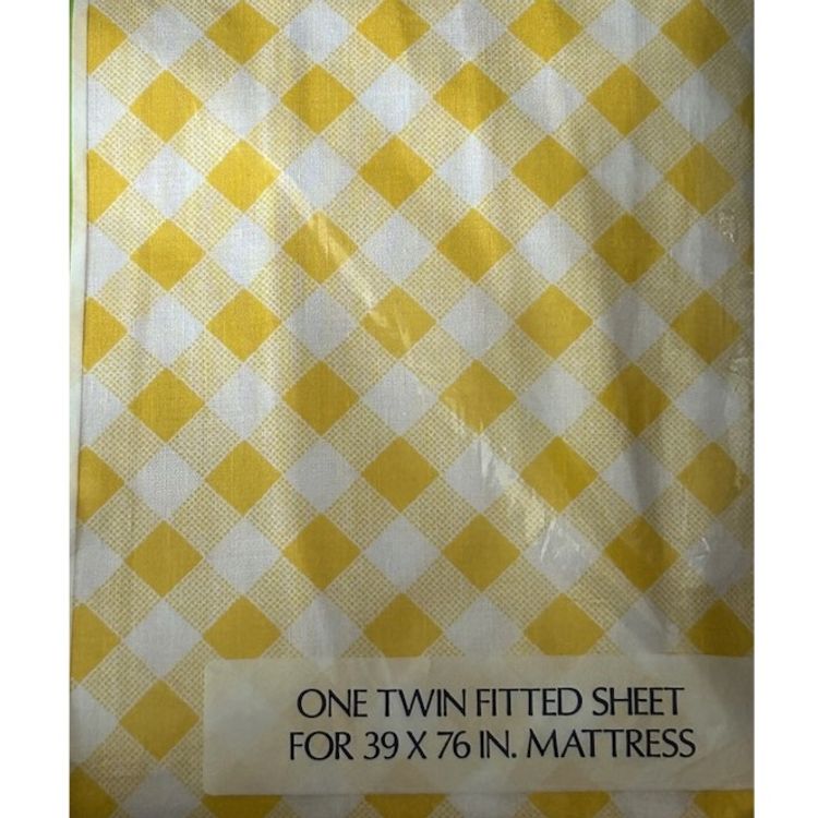 This vintage Dan River Dantrel twin fitted sheet is a must-have for collectors and lovers of beautiful linens. The sheet features a lovely yellow and white plaid pattern that is perfect for adding a touch of vintage charm to any bedroom. Made from a soft and durable 50/50 cotton polyester blend material, this sheet is designed to last and provide a comfortable night's sleep.