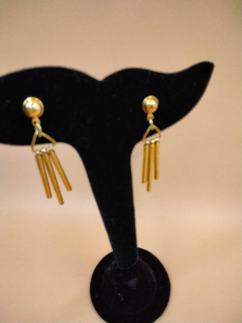 Vintage Dangle Post Earrings Gold Plated 1980's. Silver Toned posts and backs. They have 3 gold colored bars dangling down. Earrings are 2 inches long. They are in very good condition. Photos are part of the description.