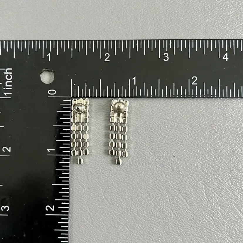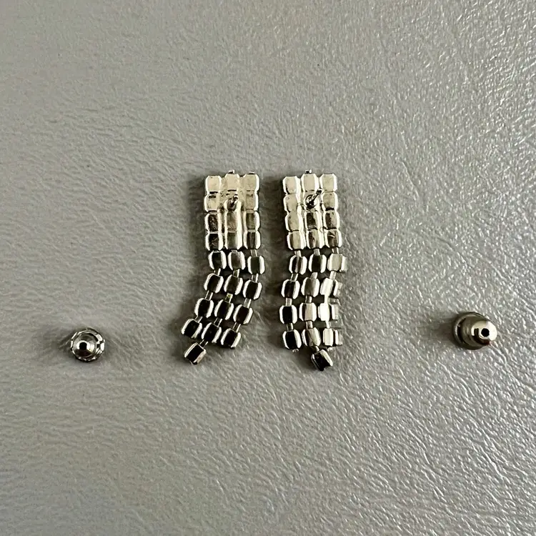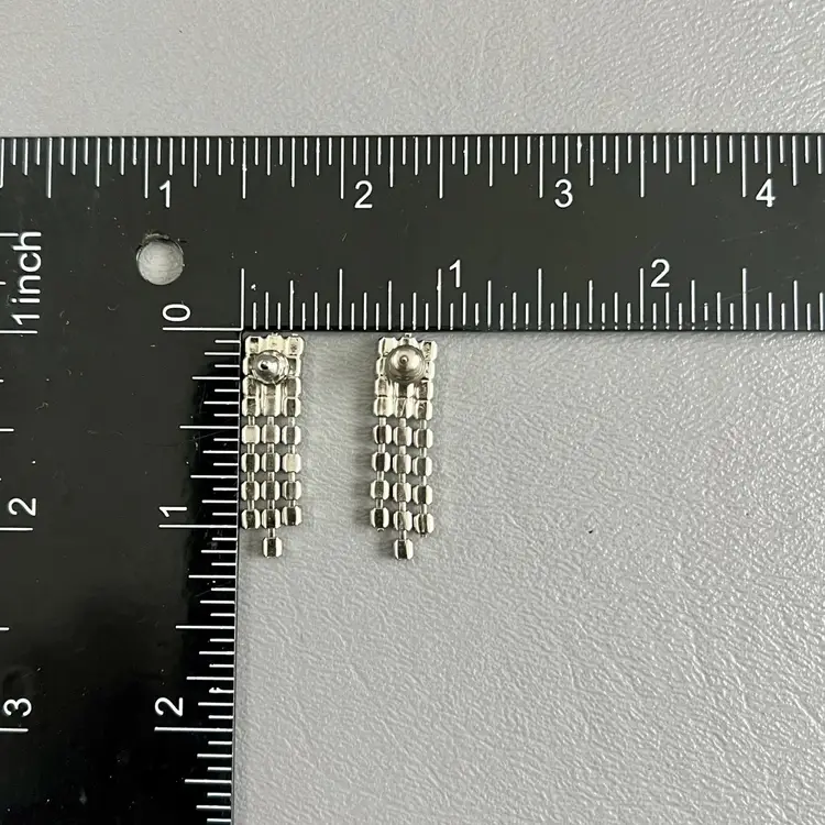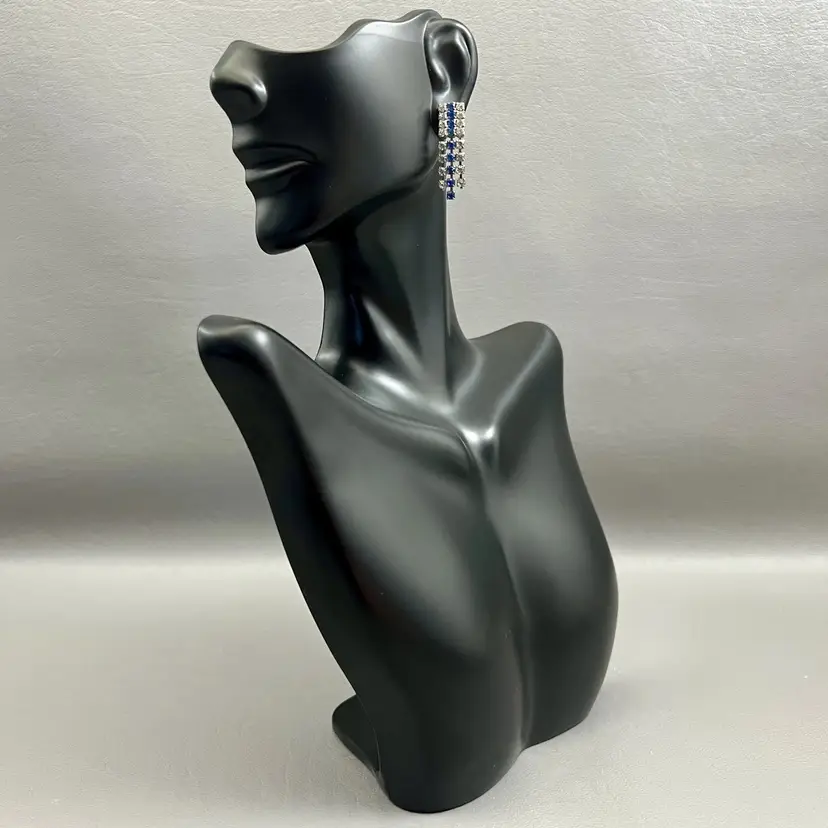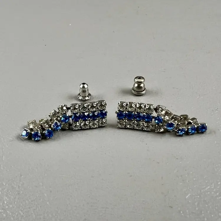 Vintage Dangle Rhinestone Earrings Pierced Clear Blue Silver Tone Pronged 1 1/8in