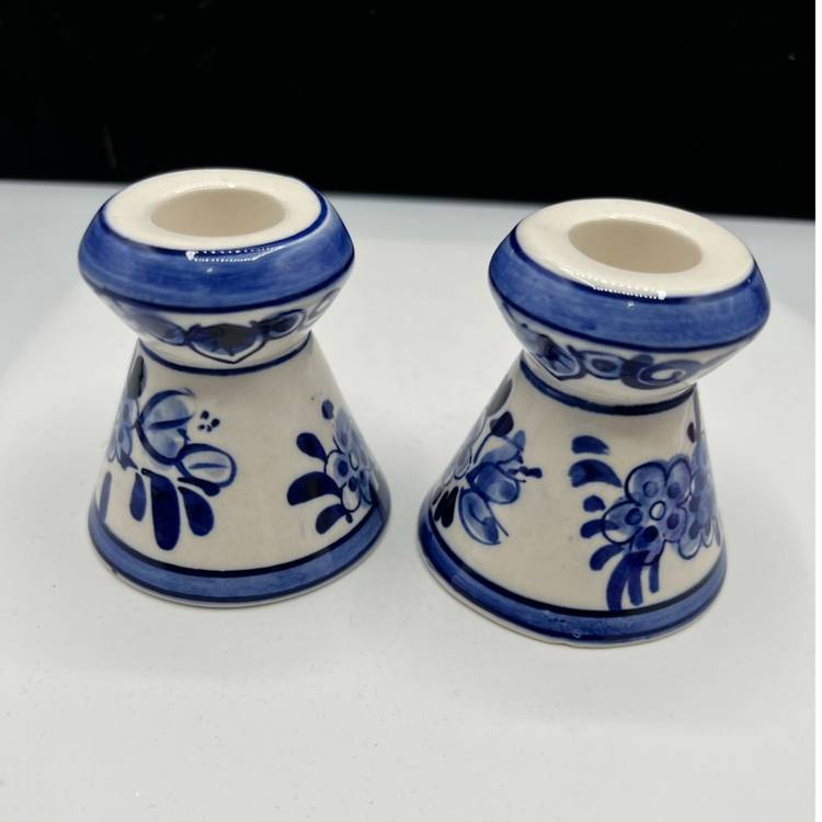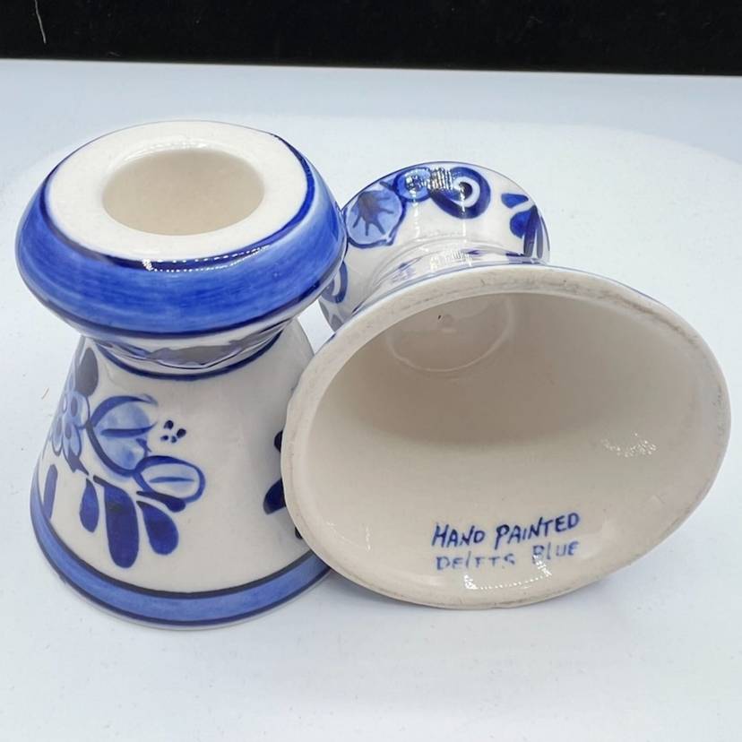 VINTAGE DELFT BLUE WINDMILL HAND PAINTED CERAMIC TAPER CANDLESTICK HOLDERS. THEY ARE IN PERFECT CONDITION.