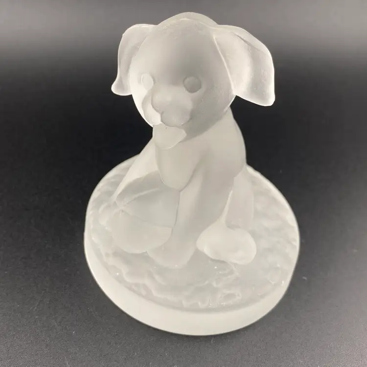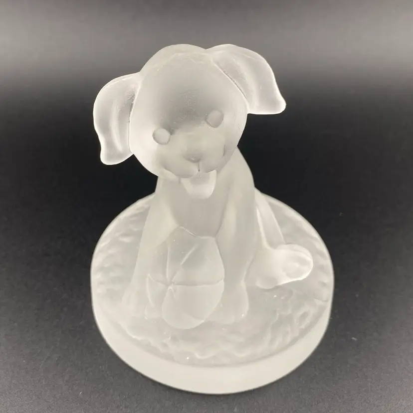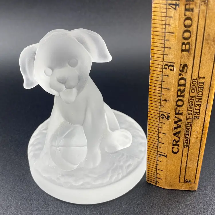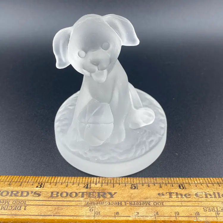 Vintage Dog Frosted Glass Paperweight Cottagecore Retro Heavy