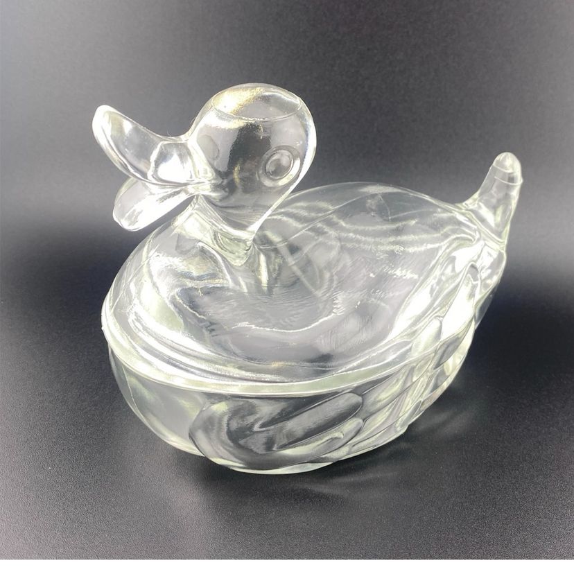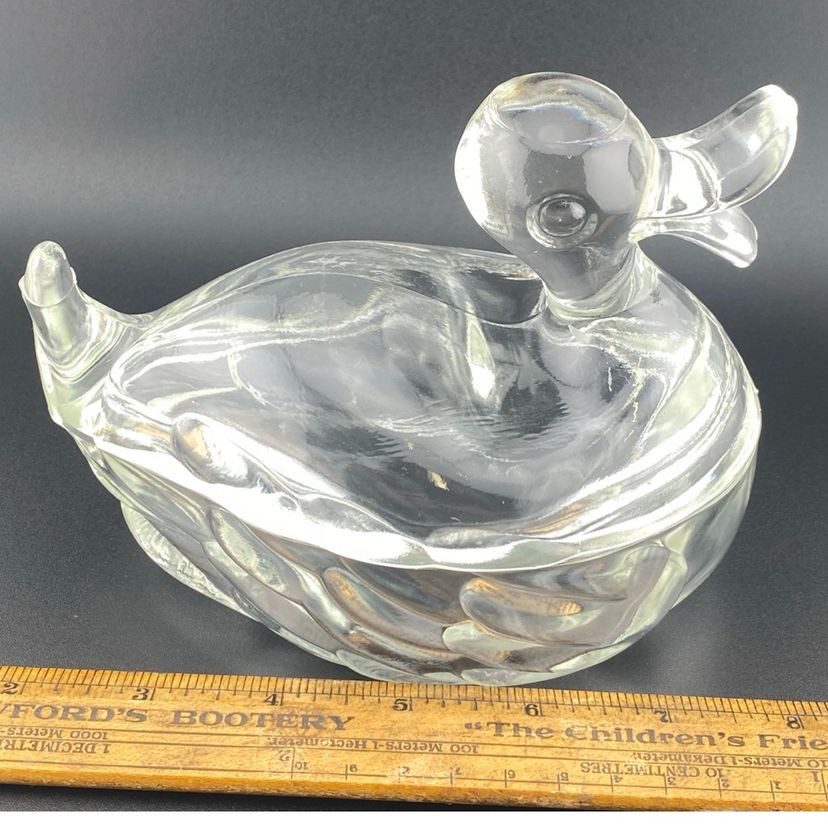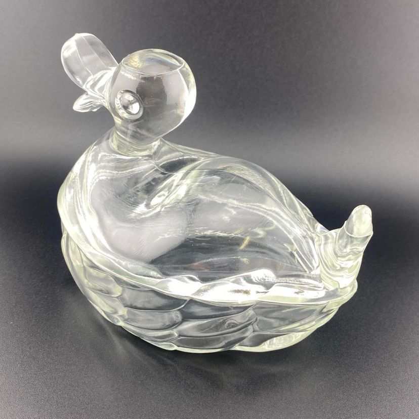 Vintage Duck On Nest Jeanette Glass Sweet Little One Candy Dish Cottage