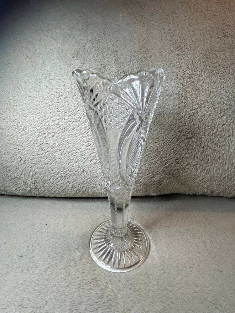 this is a vintage McKee Glass vase in the Jubilee or Hickman pattern.