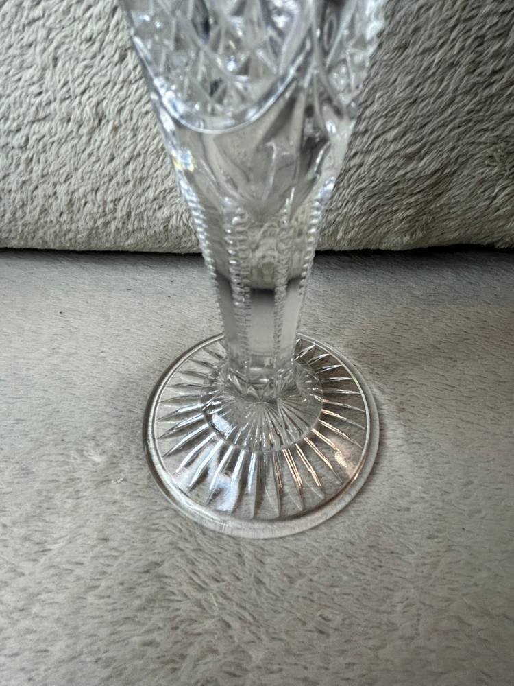 The vase has a trumpet shape with a flared rim and a footed, round pedestal base