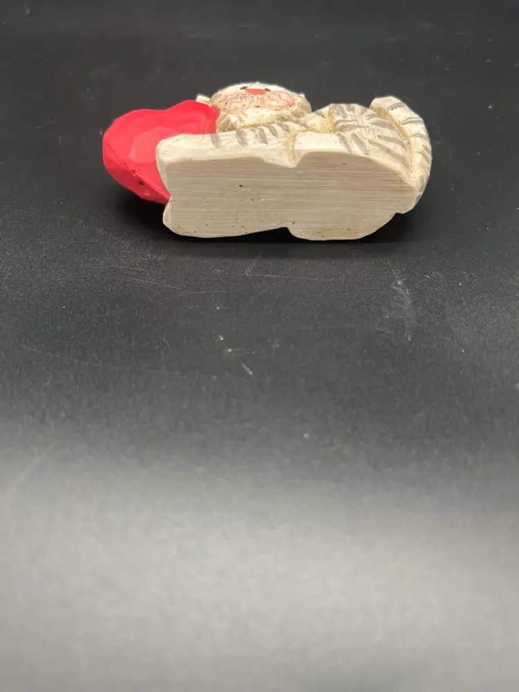 This striped kitten embracing a red heart is a classic example of renowned folk artist Eddie Walker. Radiating charm and warmth, crafted in 1980s for Midwest of Cannon Falls, it's made of wood-look resin with hand-painted details and a sweet folk-art style. Perfect for collectors of Eddie Walker, cat lovers or a cozy cottagecore shelf. Heartfelt accent with timeless appeal. 1 3/4" tall, 3" wide. Excellent condition, no chips or cracks. Shipping included.