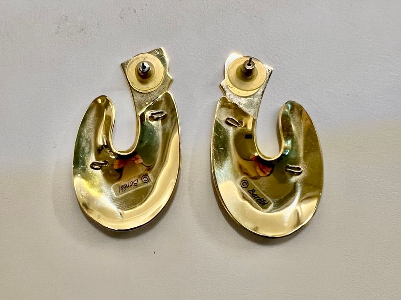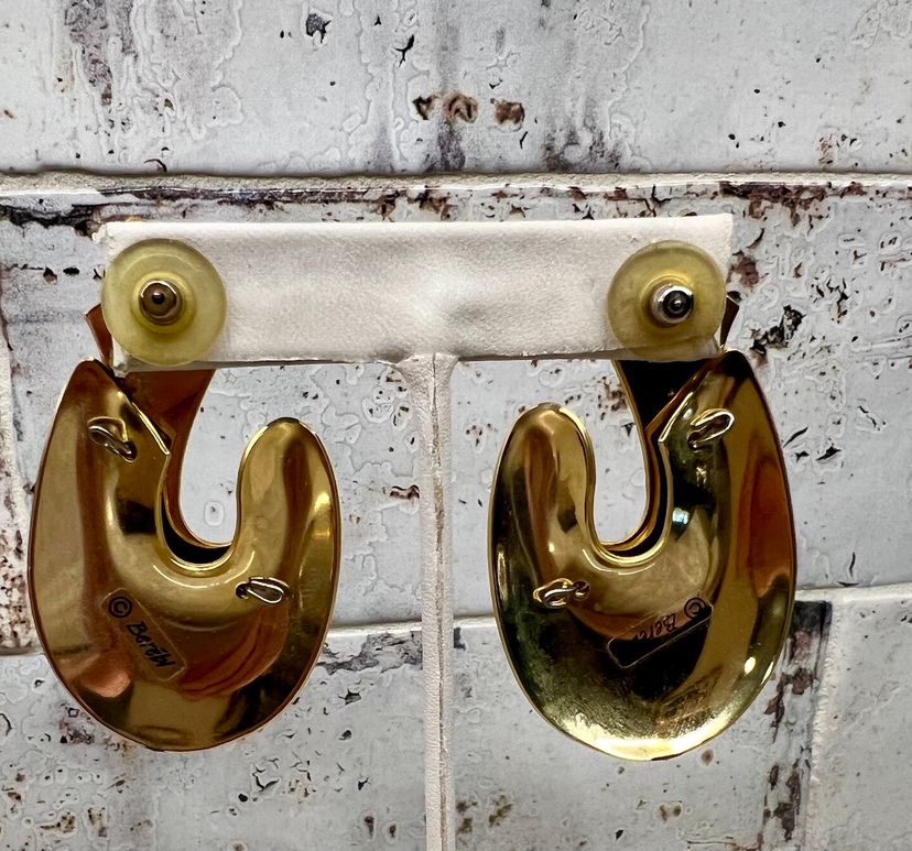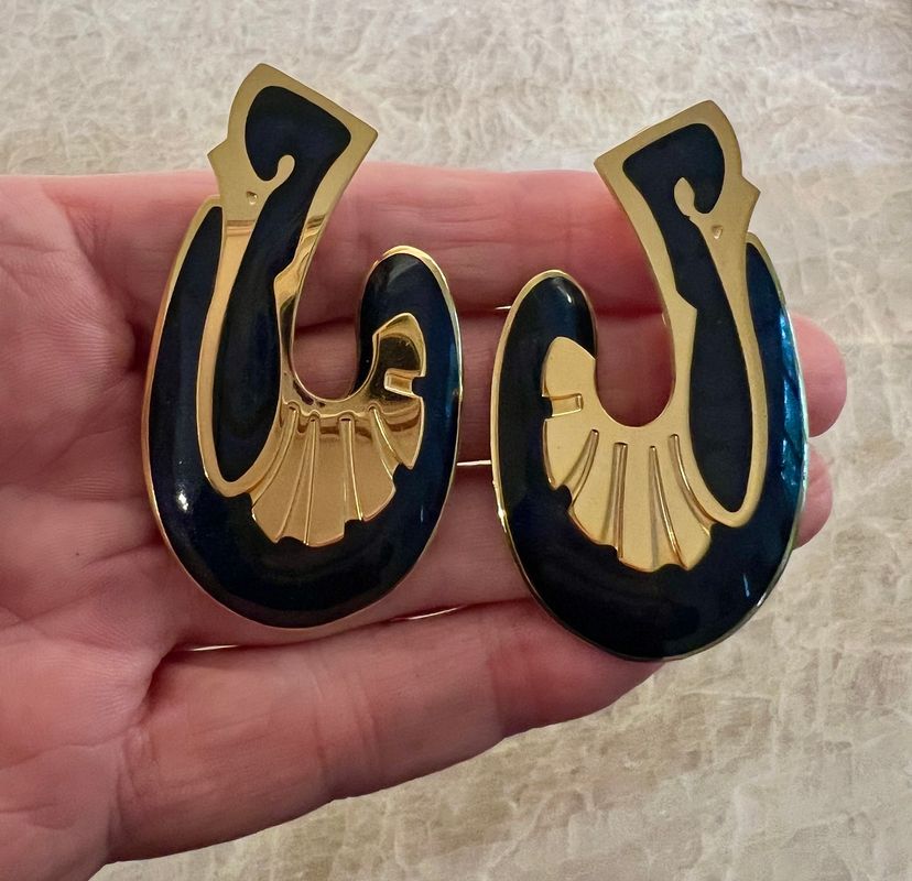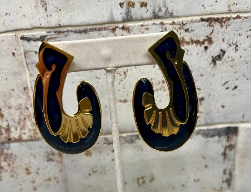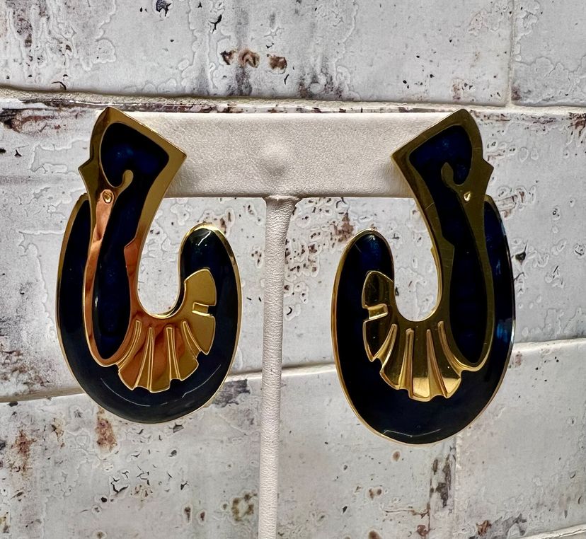Vintage Edgar Berebi Navy Blue Swirl Enamel Gold Tone Pair Pierced #E-1